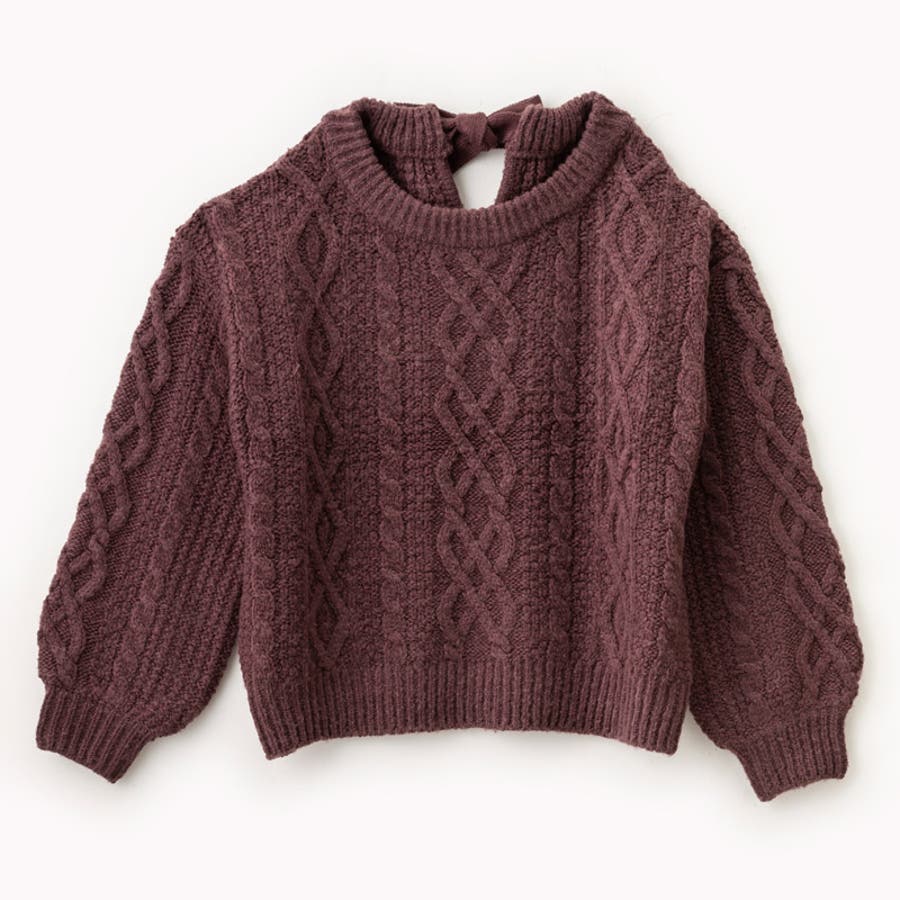 レディースファッション通販 レディース RIm.z リムズ トップス ニット セーター ケーブルニット ゆったり バックリボン 長袖 緑 桃 乳白色 茶 春 秋 冬 韓国 オルチャン ガーリー かわいい パンツコーデ スカートコーデ シンプル