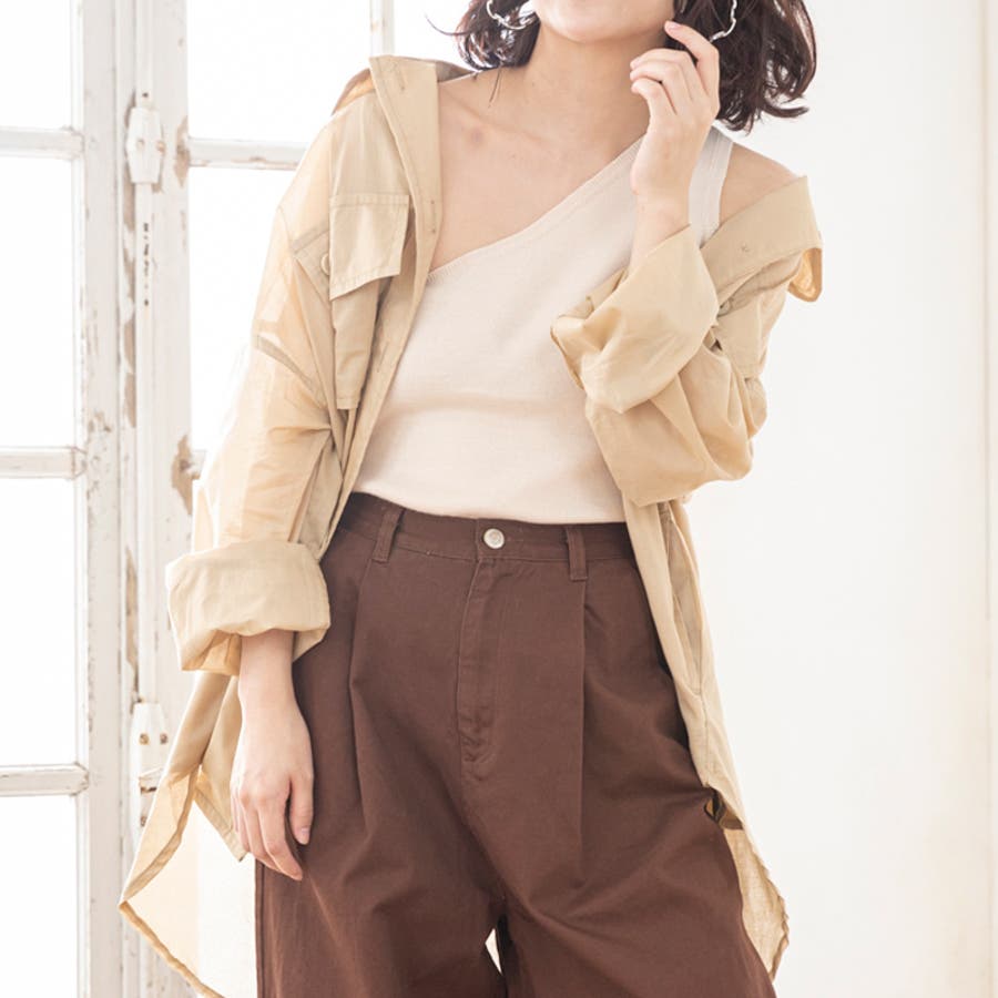 袖周りにもゆとりがあるため着やすく、ほんの少し透けるくらいの薄さが女性らしさを演出。