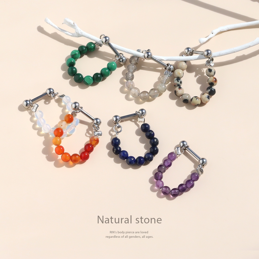 軟骨ピアス 天然石ビーズ ナチュラルストーンカラフル