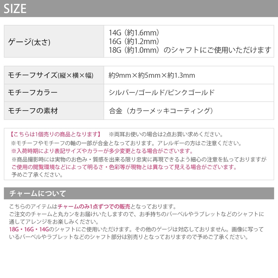 チャームのみ1点ずつでの販売となっております