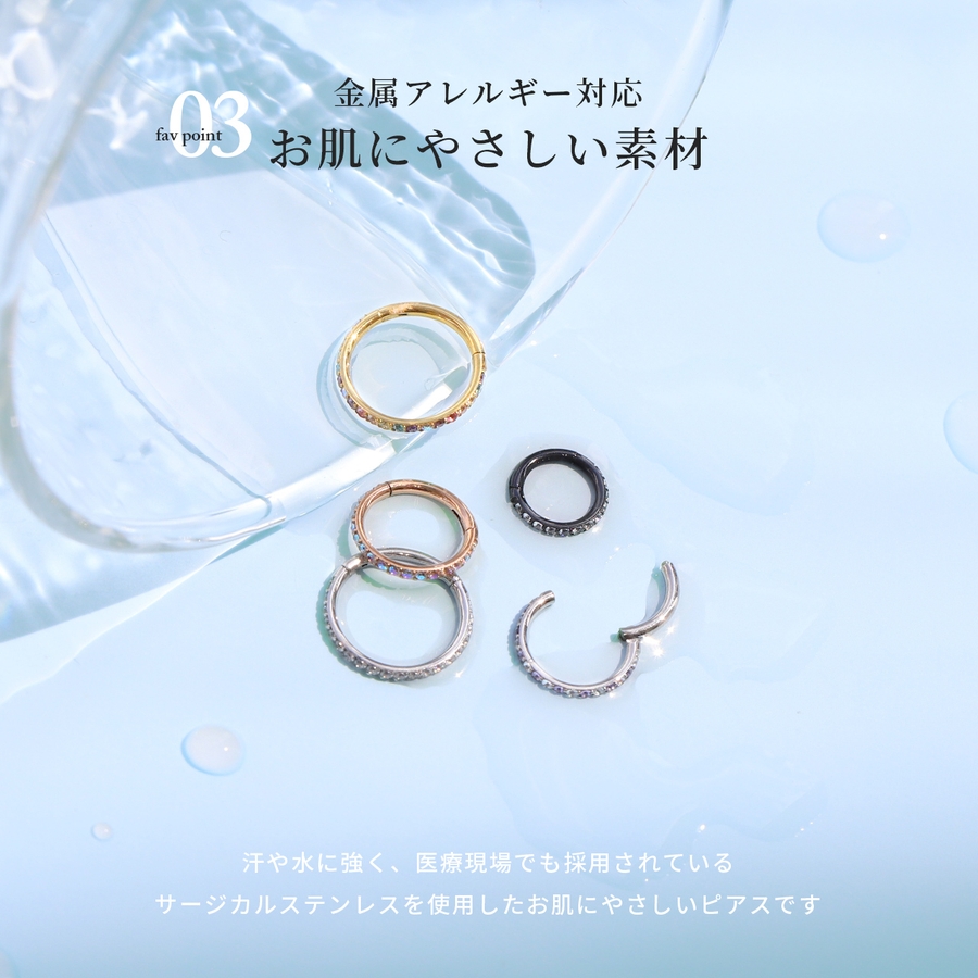 毎日愛用しています!本当にかゆくならないのでオススメです。さん (20代 / 女性 )購入アイテム:カラー クリア・シルバーゲージ・内径 18G・6mm