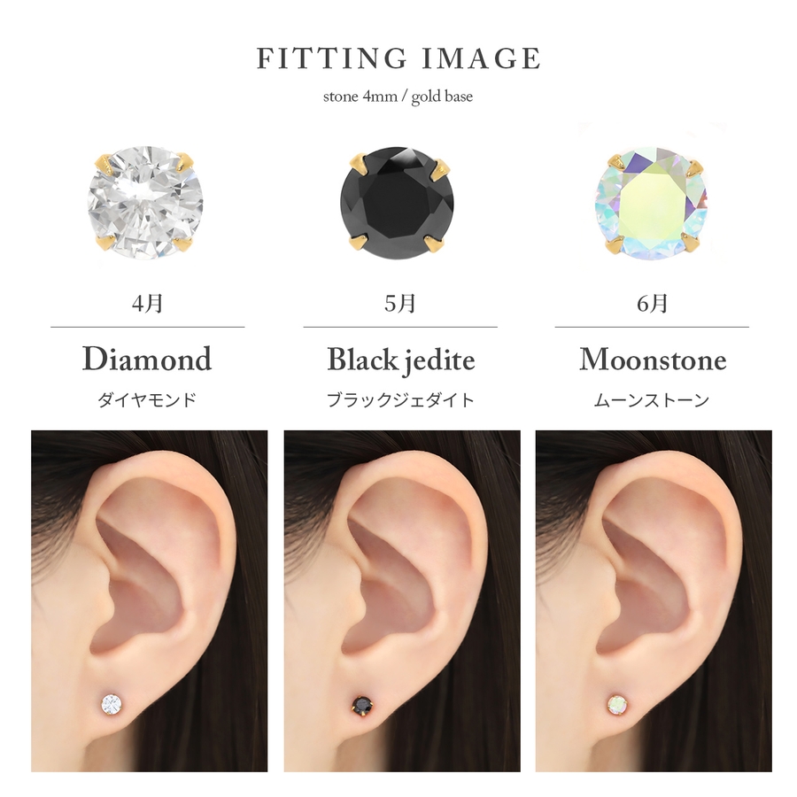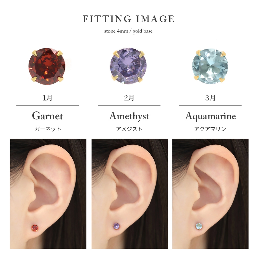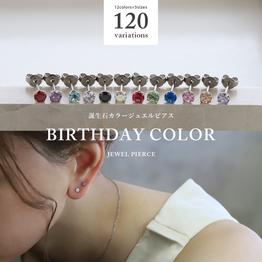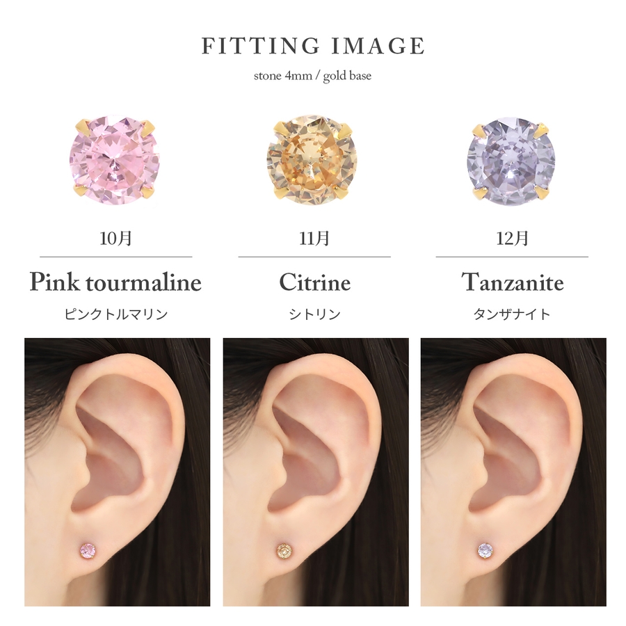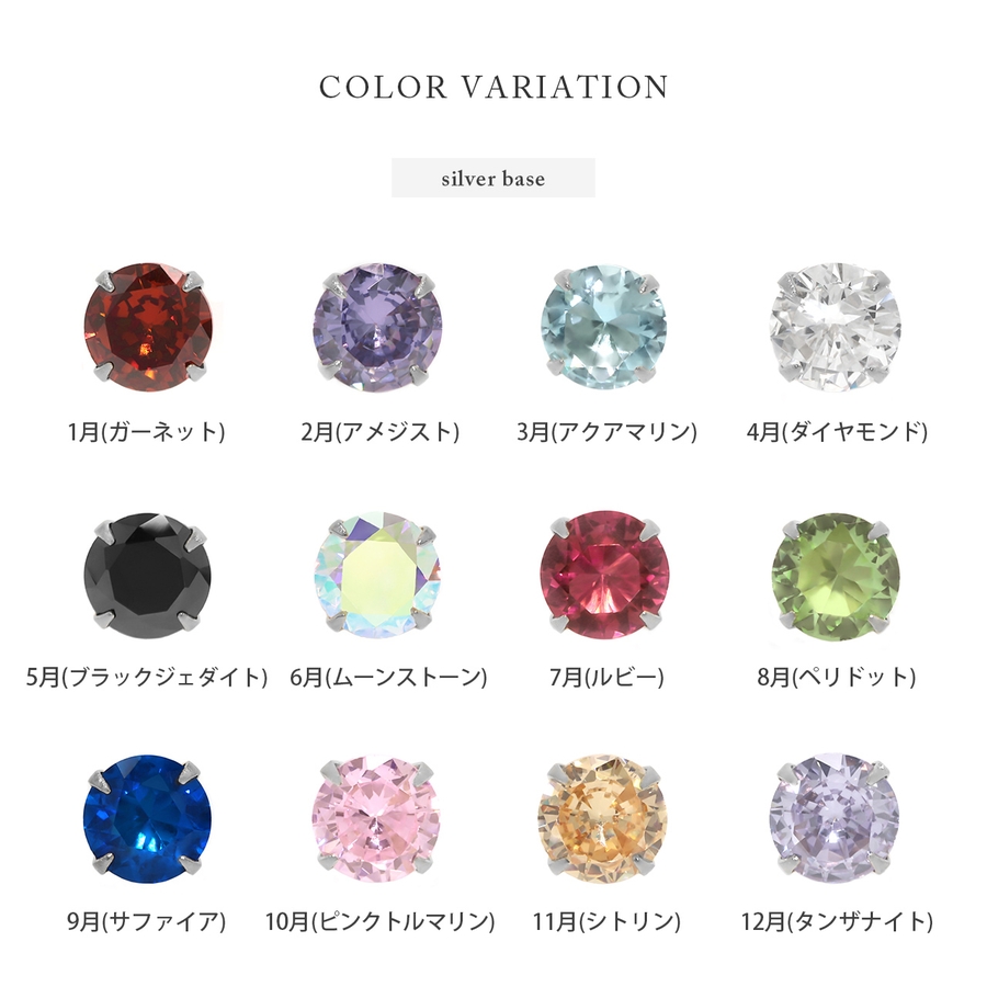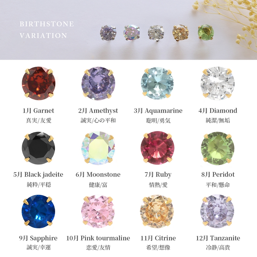 4月(ダイヤモンド),10月(ピンクトルマリン),11月(シトリン),2月(アメジスト),5月(ブラックジェダイト),6月(ムーンストーン),1月(ガーネット),3月(アクアマリン),7月(ルビー),8月(ペリドット),9月(サファイア),12月(タンザナイト),限定カラー