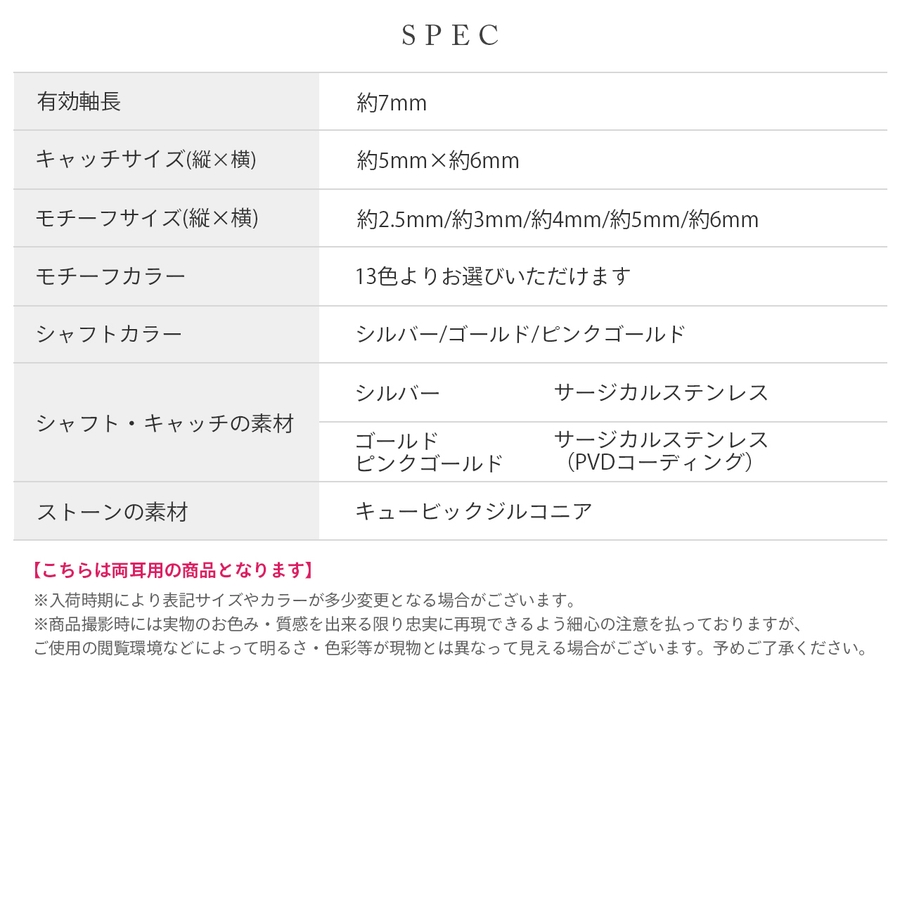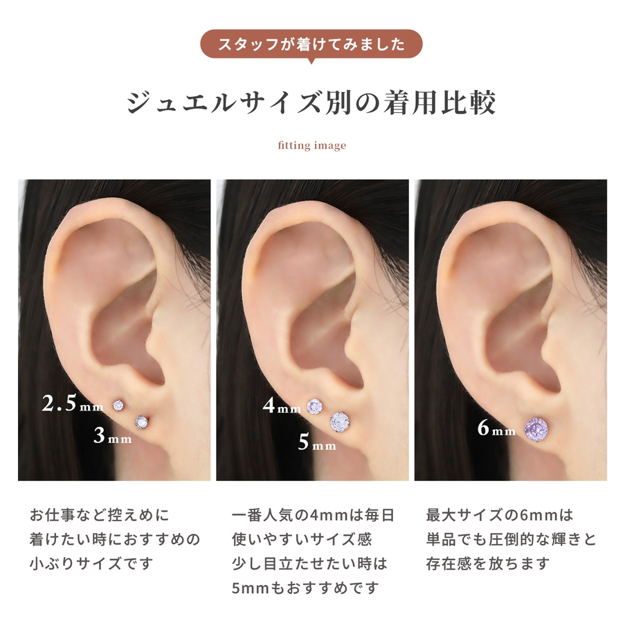 | ベースカラー・ジュエルサイズ | シルバー・4mm / シルバー・5mm / シルバー・2.5mm / シルバー・3mm / シルバー・6mm / ゴールド・2.5mm / ゴールド・3mm / ゴールド・4mm / ゴールド・5mm / ゴールド・6mm / ピンクゴールド・2.5mm / ピンクゴールド・3mm / ピンクゴールド・4mm / ピンクゴールド・5mm / ピンクゴールド・6mm |