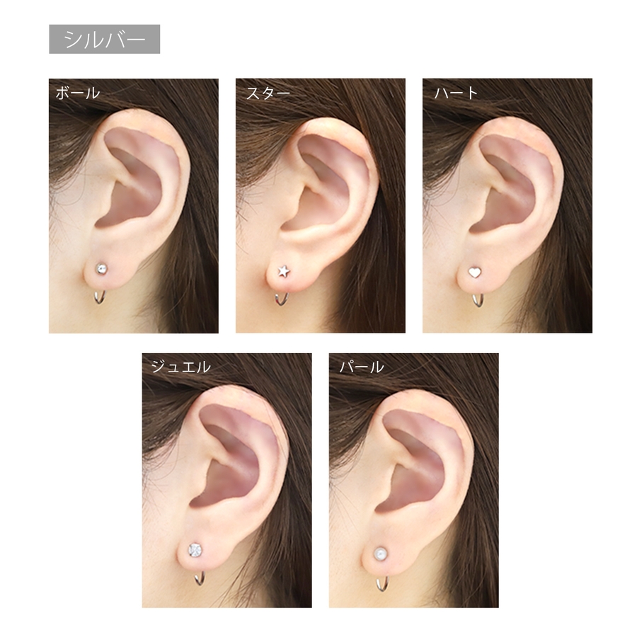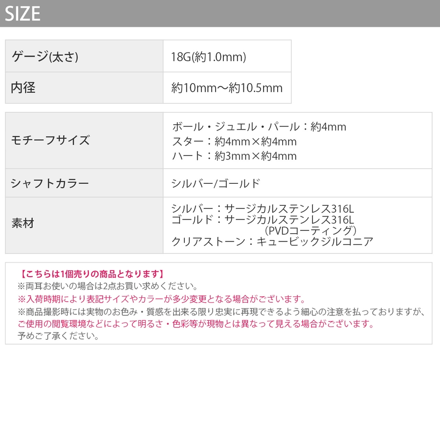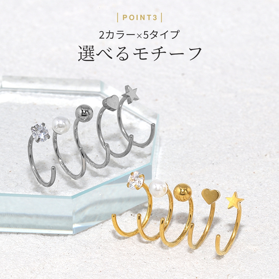 軟骨ピアス さすだけピアスキャッチレス ボールハート星パールジュエル