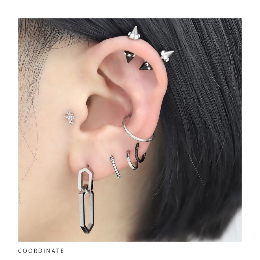 ピアス カットデザインシンプル サージカルステンレスフープ金属アレルギーセグメン…