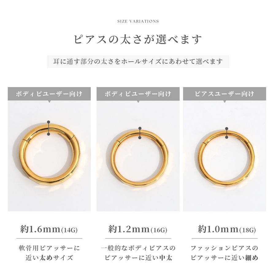 | ゲージ・内径 | 16G・6mm / 16G・8mm / 16G・10mm / 18G・6mm / 18G・8mm / 18G・10mm / 14G・6mm / 14G・8mm / 14G・10mm |