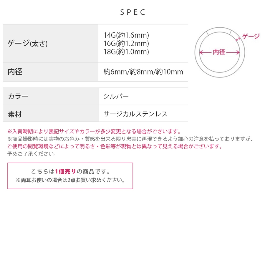 | ゲージ・内径 | 16G・6mm / 16G・8mm / 16G・10mm / 18G・6mm / 18G・8mm / 18G・10mm / 14G・6mm / 14G・8mm / 14G・10mm |