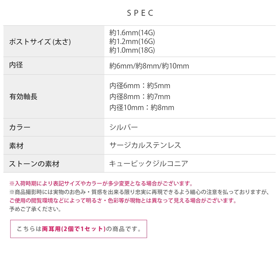 | ポストサイズ・内径 | 1.2mm・6mm / 1.2mm・8mm / 1.2mm・10mm / 1.0mm・6mm / 1.0mm・8mm / 1.0mm・10mm / 1.6mm・6mm / 1.6mm・8mm / 1.6mm・10mm |