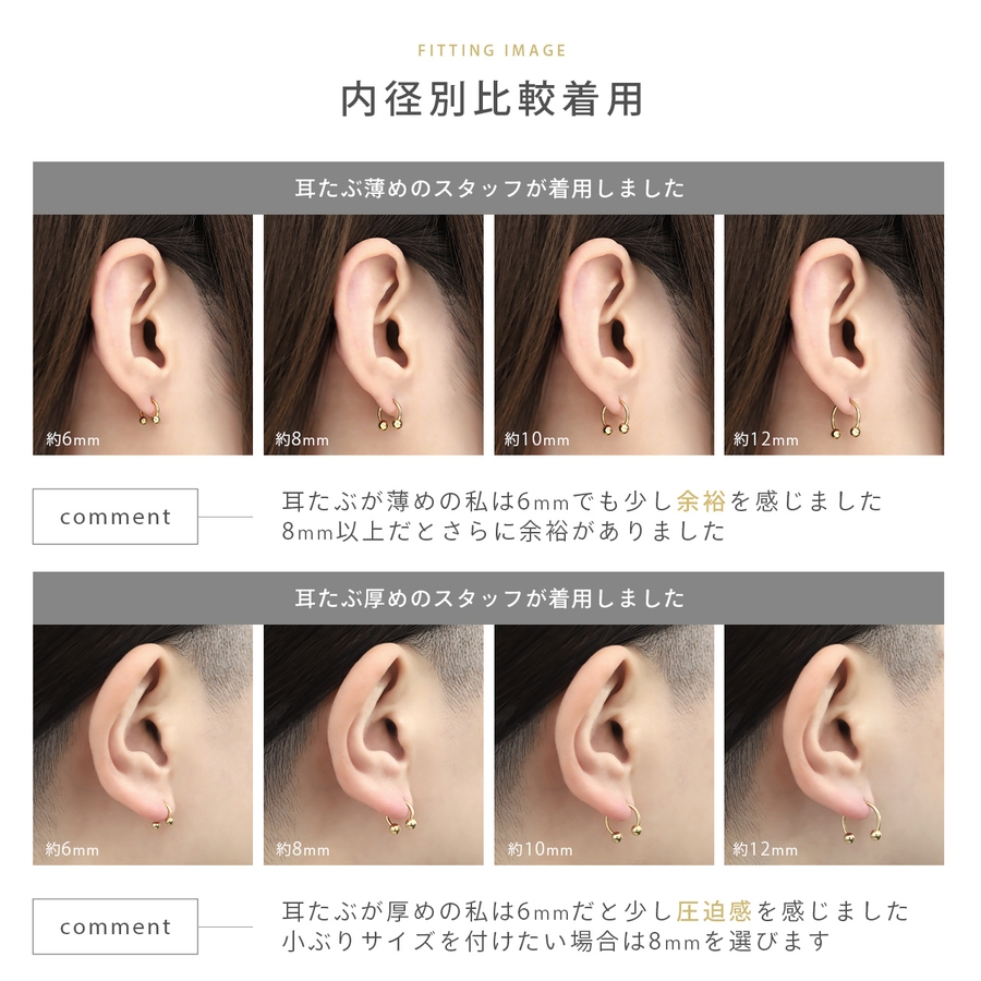 もう1つ買おうか検討中ですさん (30代 / 女性 )購入アイテム:ゲージ・カラー 18G・ピンクゴールド内径・ボールサイズ 12mmx4mm - 写真通り