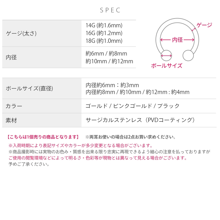 | ゲージ・カラー | 14G・ゴールド / 16G・ゴールド / 18G・ゴールド / 14G・ピンクゴールド / 16G・ピンクゴールド / 18G・ピンクゴールド / 14G・ブラック / 16G・ブラック / 18G・ブラック |