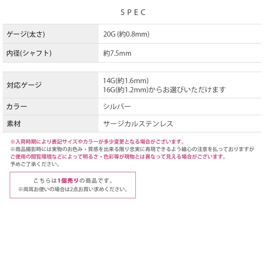 | ゲージ | 20G(16Gのネジ) / 20G(14Gのネジ) |