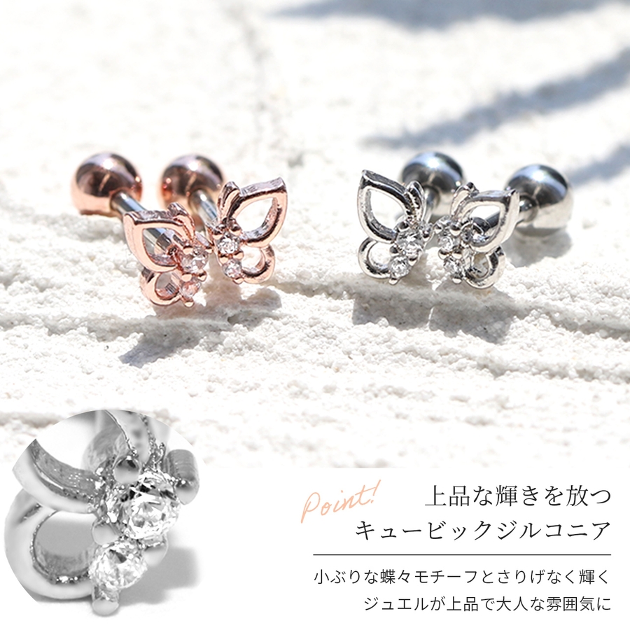 軟骨ピアス 蝶ちょうちょジュエルバタフライ ストレートバーベル