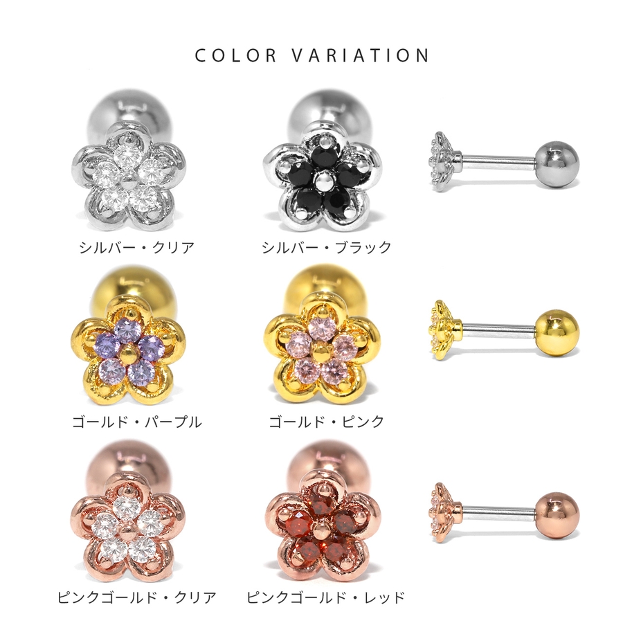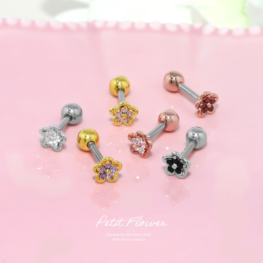 軟骨ピアス 花かわいい フラワージュエルキュービックジルコニア