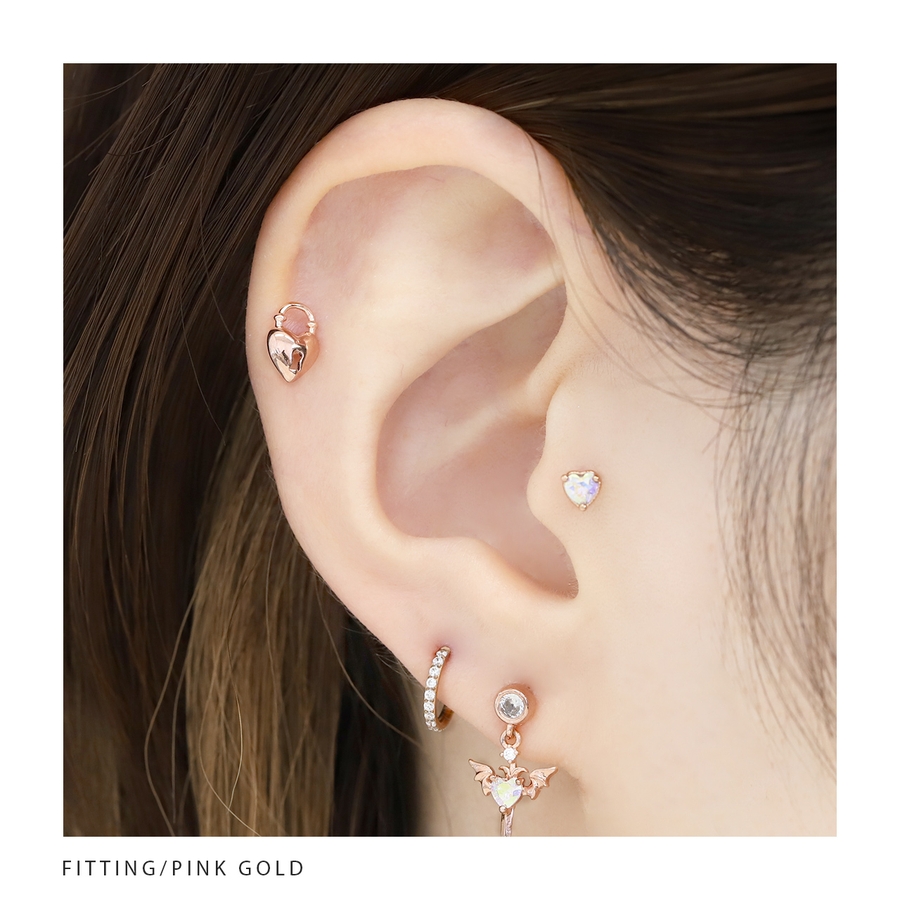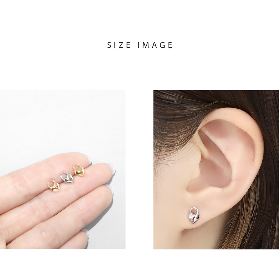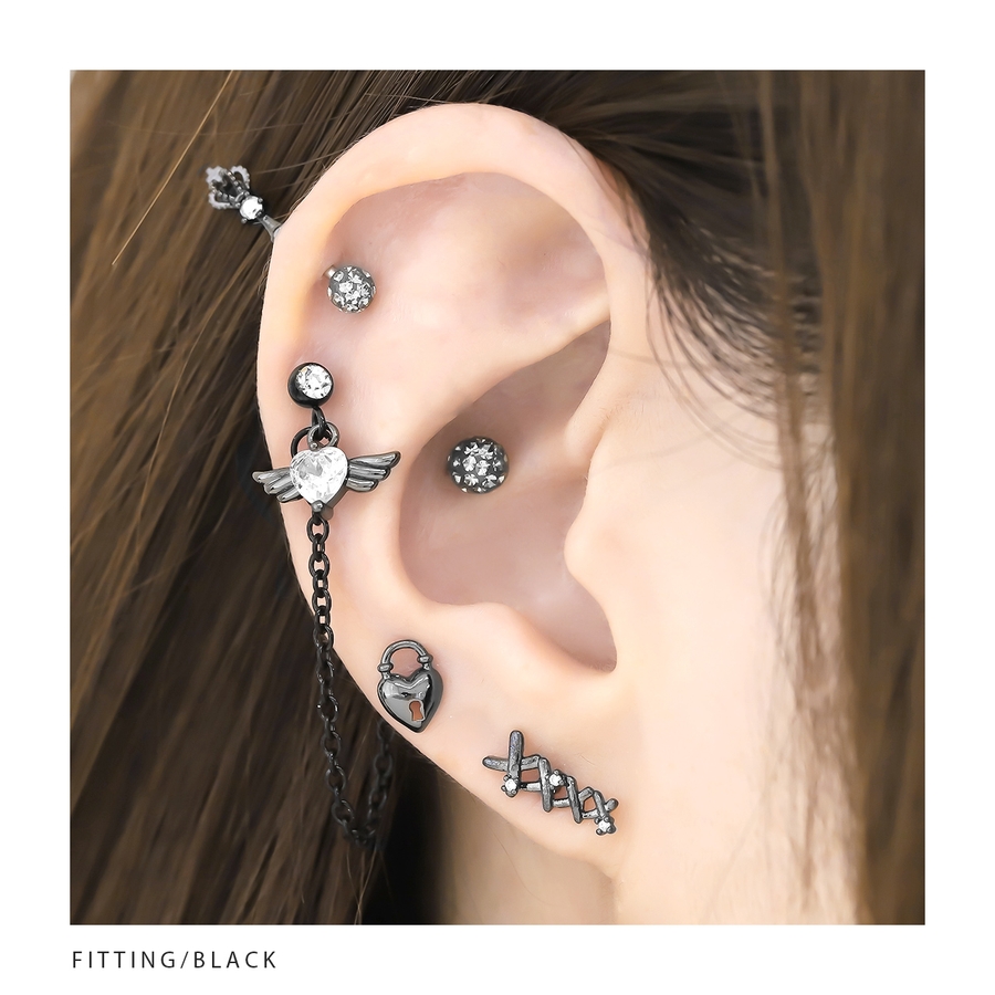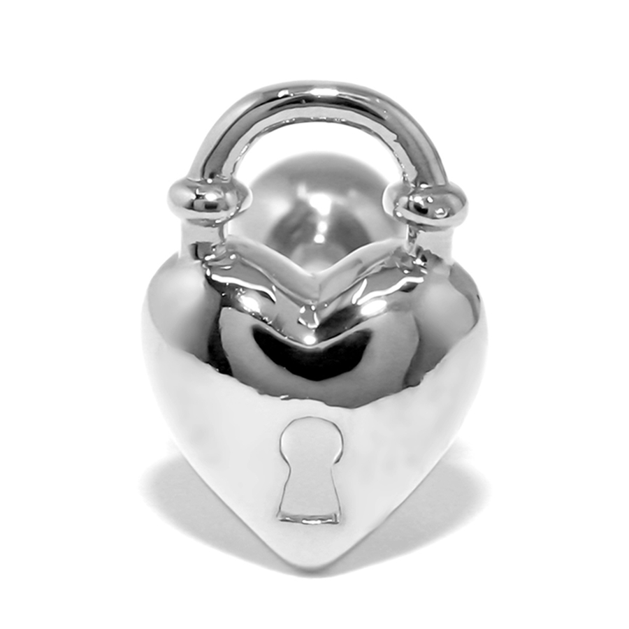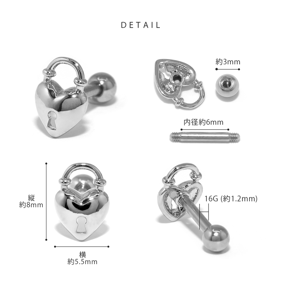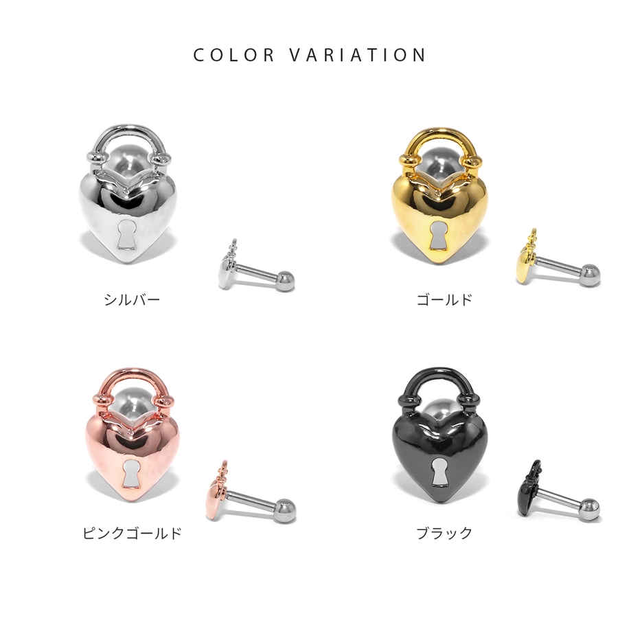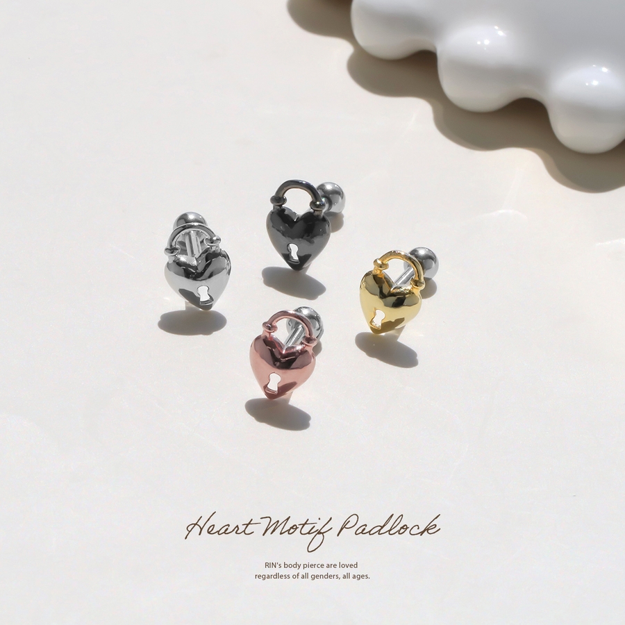 【ブラック】軟骨ピアスハート南京錠 鍵錠前ロックかわいい ストレートバーベルボディピアス