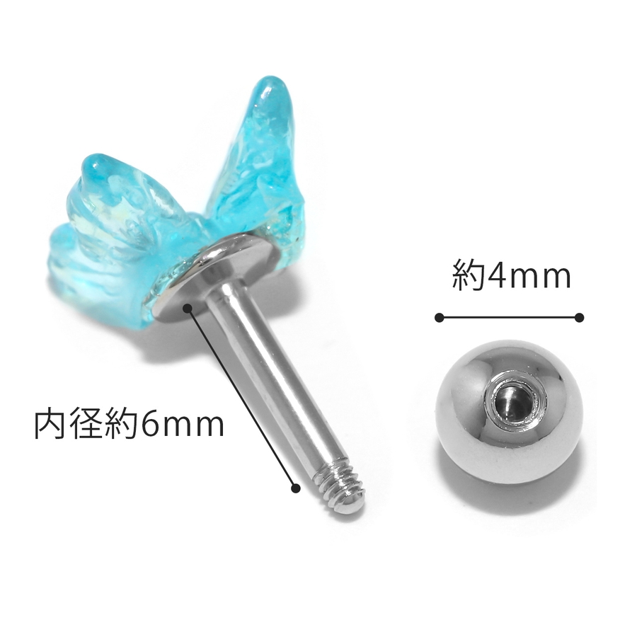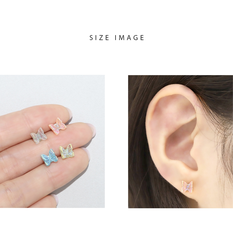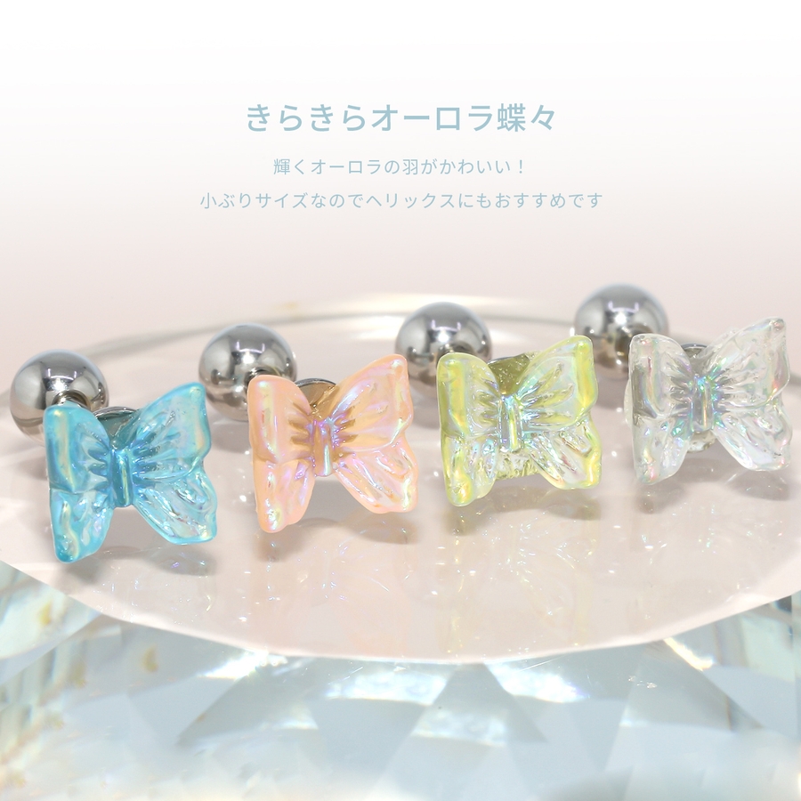 軟骨ピアス クリアキラキラ 蝶々バタフライ透明感アクリル