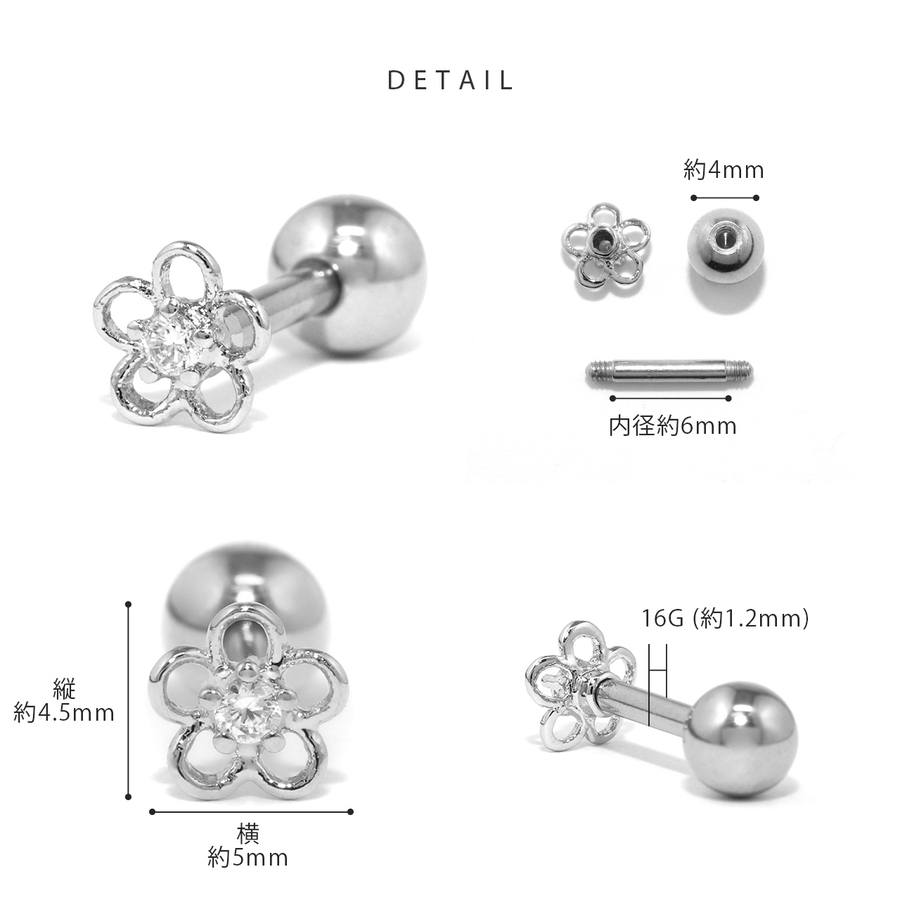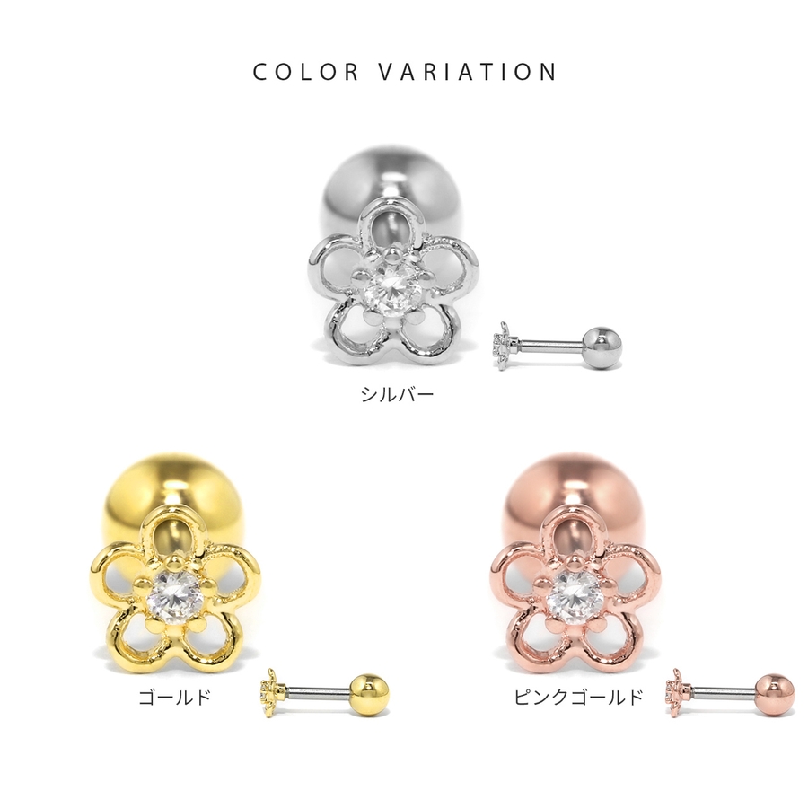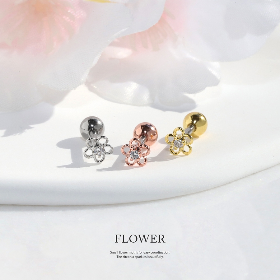 軟骨ピアスかわいい 花フラワージュエル小さめ