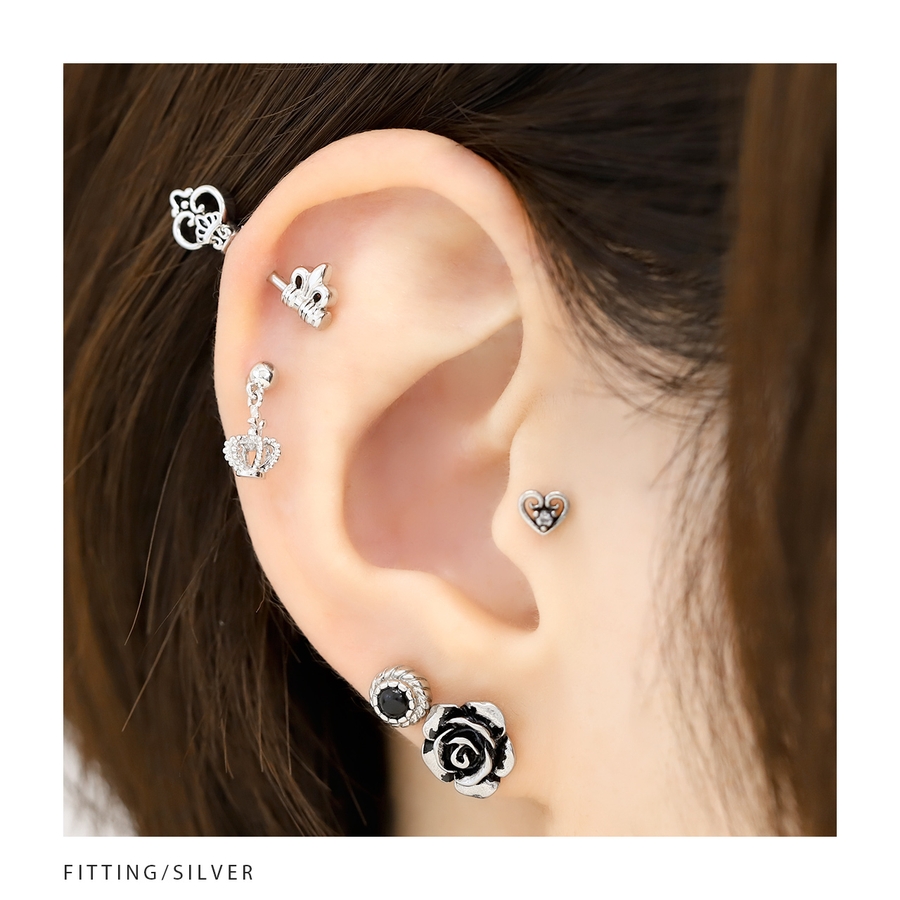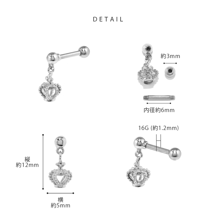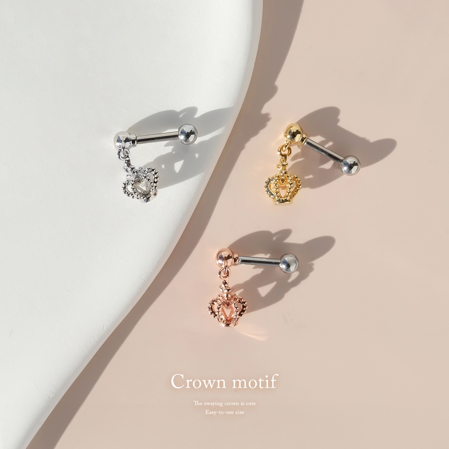 軟骨ピアス 王冠クラウン揺れるゆらゆら ストレートバーベルボディピアス