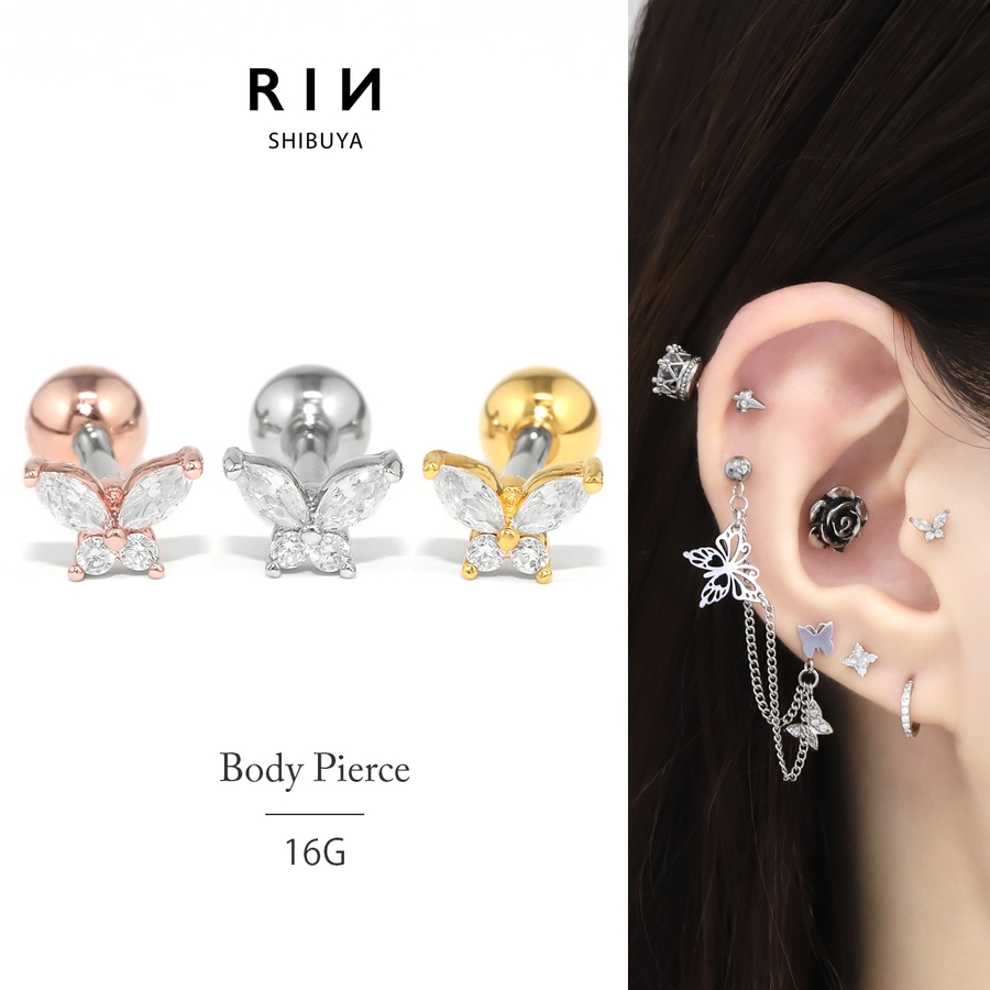 軟骨ピアス 蝶々バタフライ小さめ ジュエルキュービックジルコニア