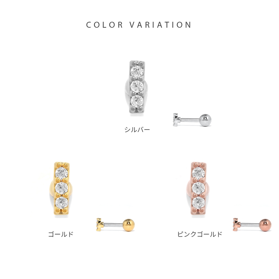 軟骨ピアス ジュエル3連上品フェミニンキュービックジルコニアストレートバーベルボ…