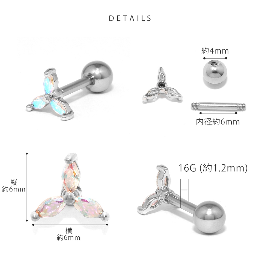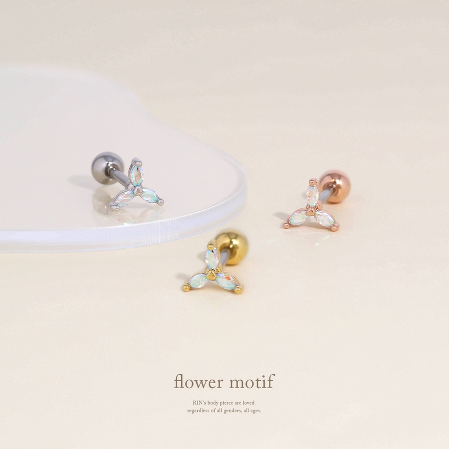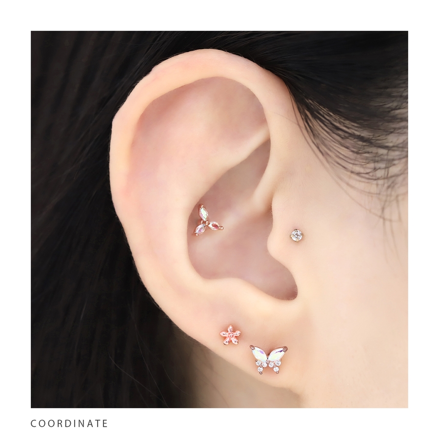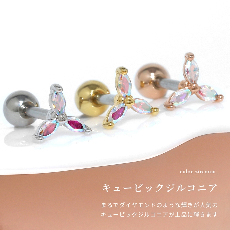 軟骨ピアス フラワー三つ葉キュービックジルコニアキラキラかわいい ボディピアス