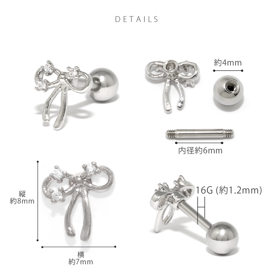 軟骨ピアス リボンバレエコアジュエルキュービックジルコニア ボディピアス