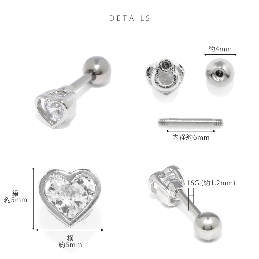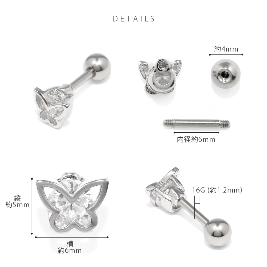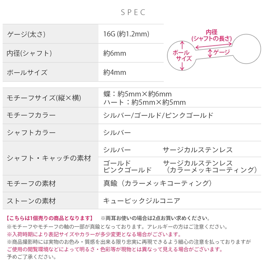 | カラー | 蝶・シルバー / 蝶・ゴールド / 蝶・ピンクゴールド / ハート・シルバー / ハート・ゴールド / ハート・ピンクゴールド |