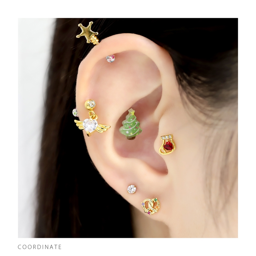 軟骨ピアス サンタツリー雪だるまクリスマスキラキラかわいい冬スノーマン ボディピ…