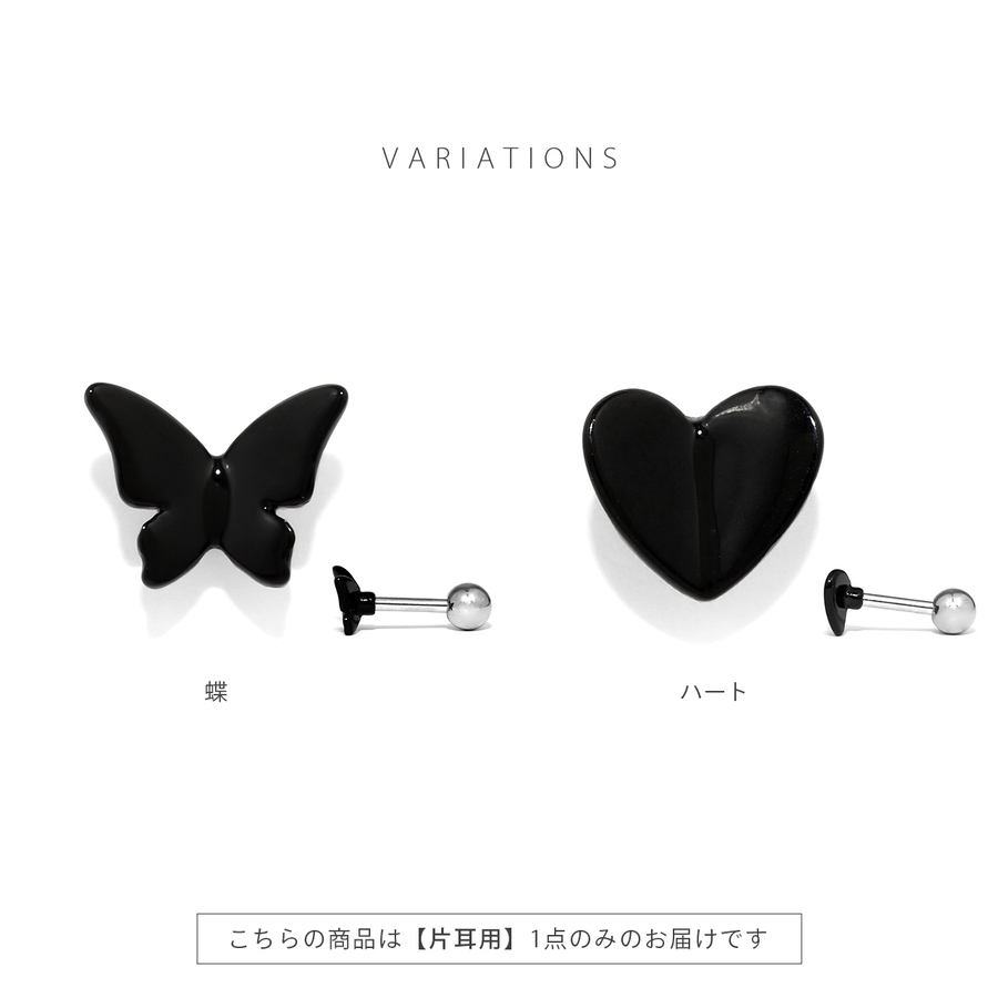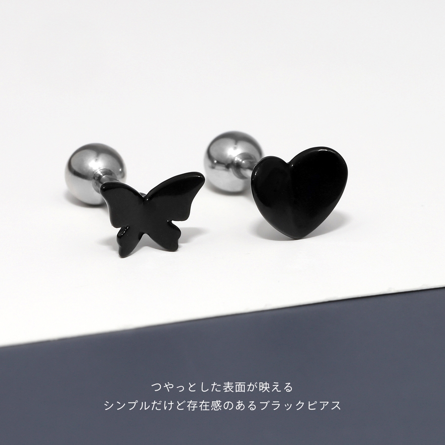 軟骨ピアス 蝶ハート黒バタフライちょうちょブラックかわいい ボディピアス