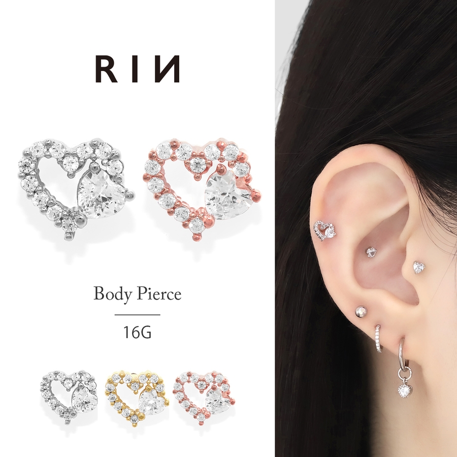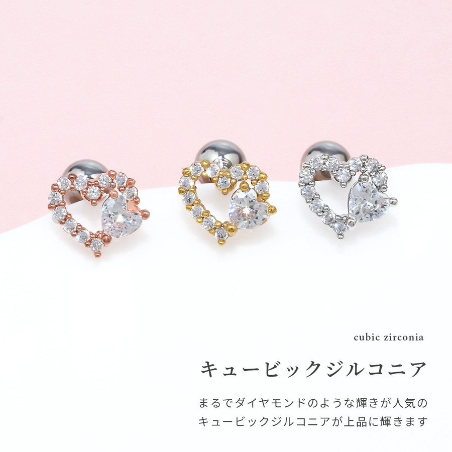 軟骨ピアス ハートジュエルフレームキラキラCZ金属アレルギー ボディピアス
