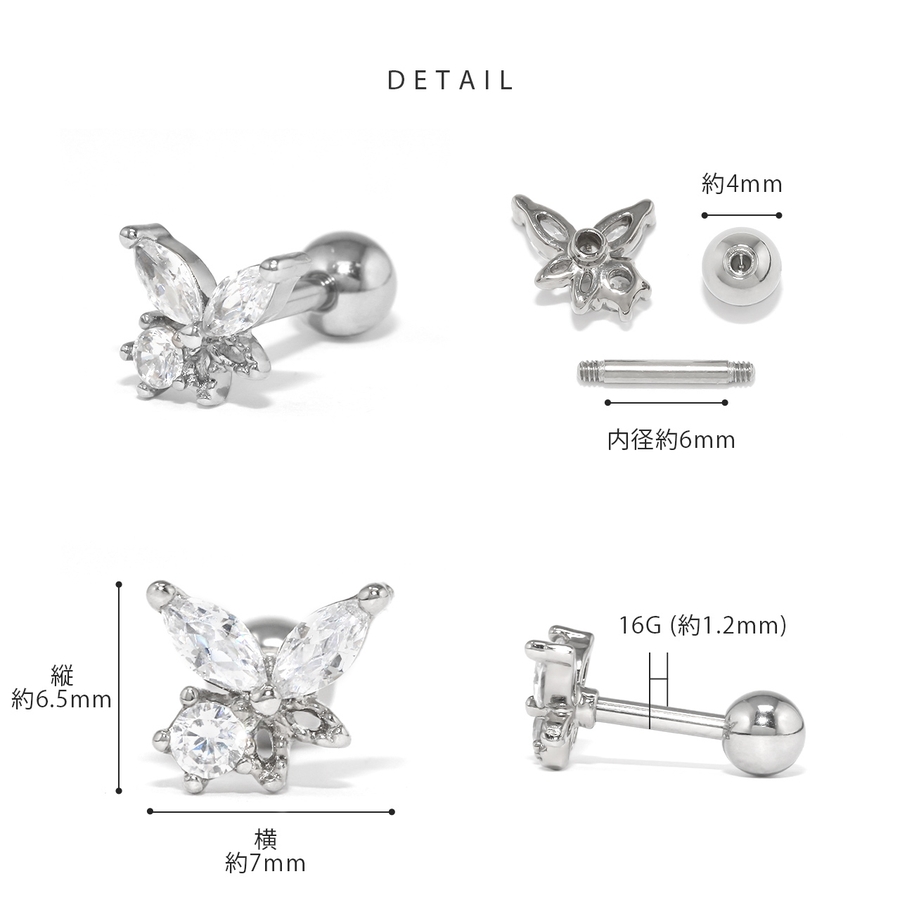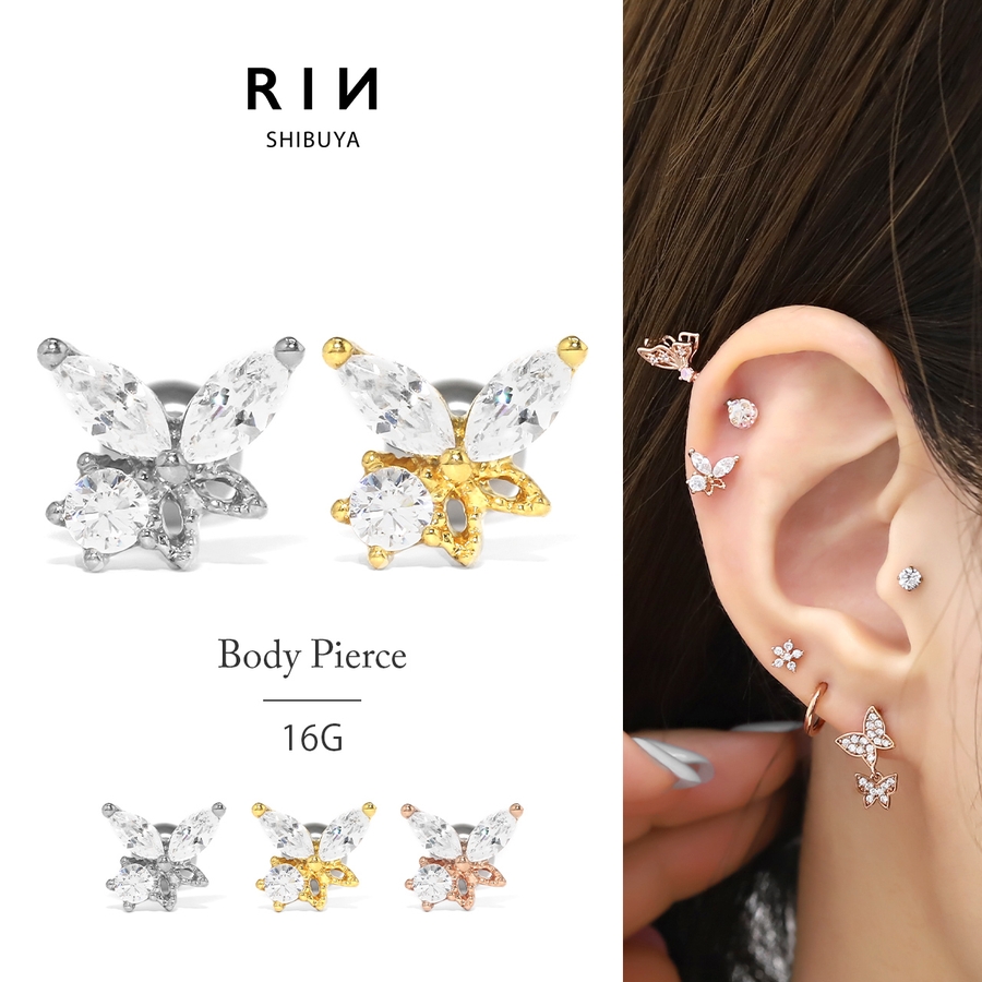 ボディピアス軟骨ピアス ピアス蝶 ジュエル