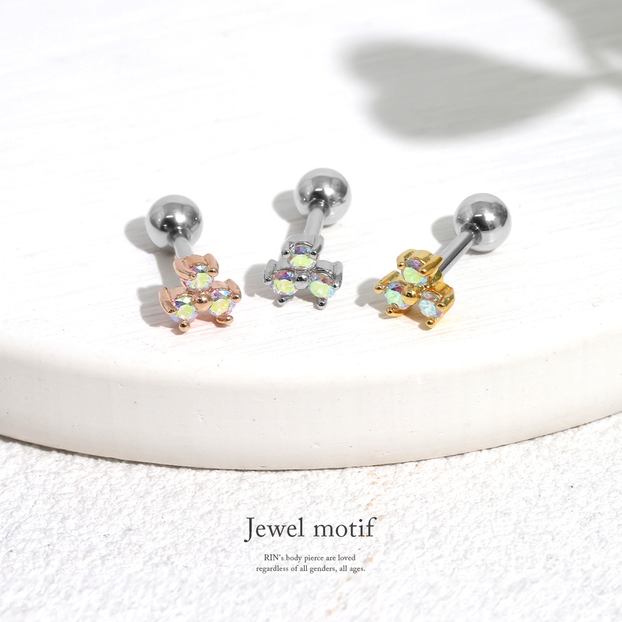軟骨ピアス 花三つ葉キュービックジルコニアジュエルかわいいキラキラ ボディピアス