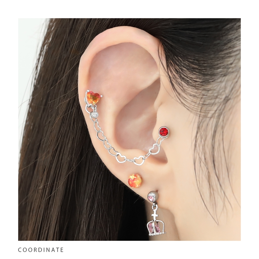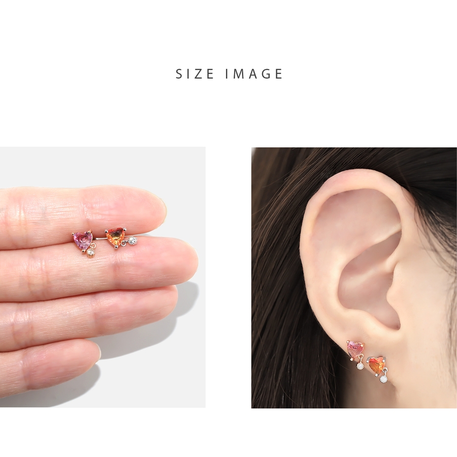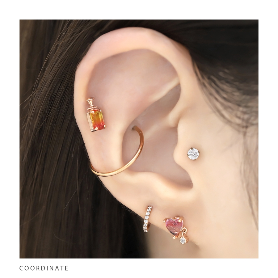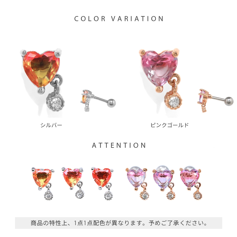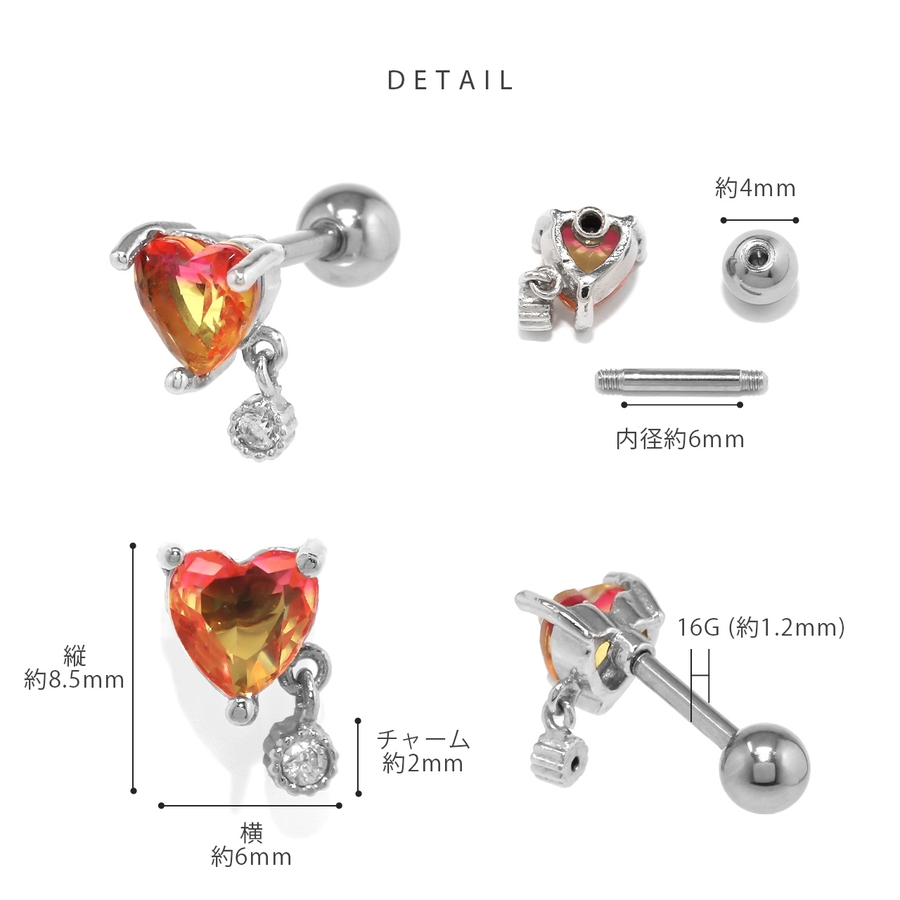 軟骨ピアスかわいい ボディピアスハートチャームグラデーションジュエル 16G
