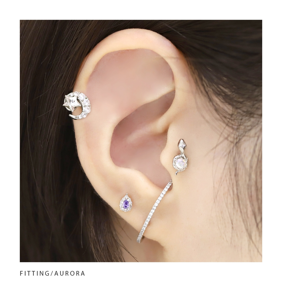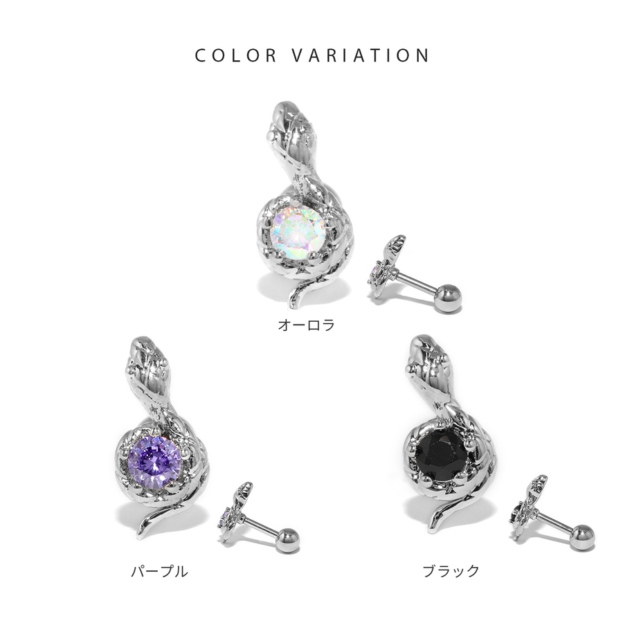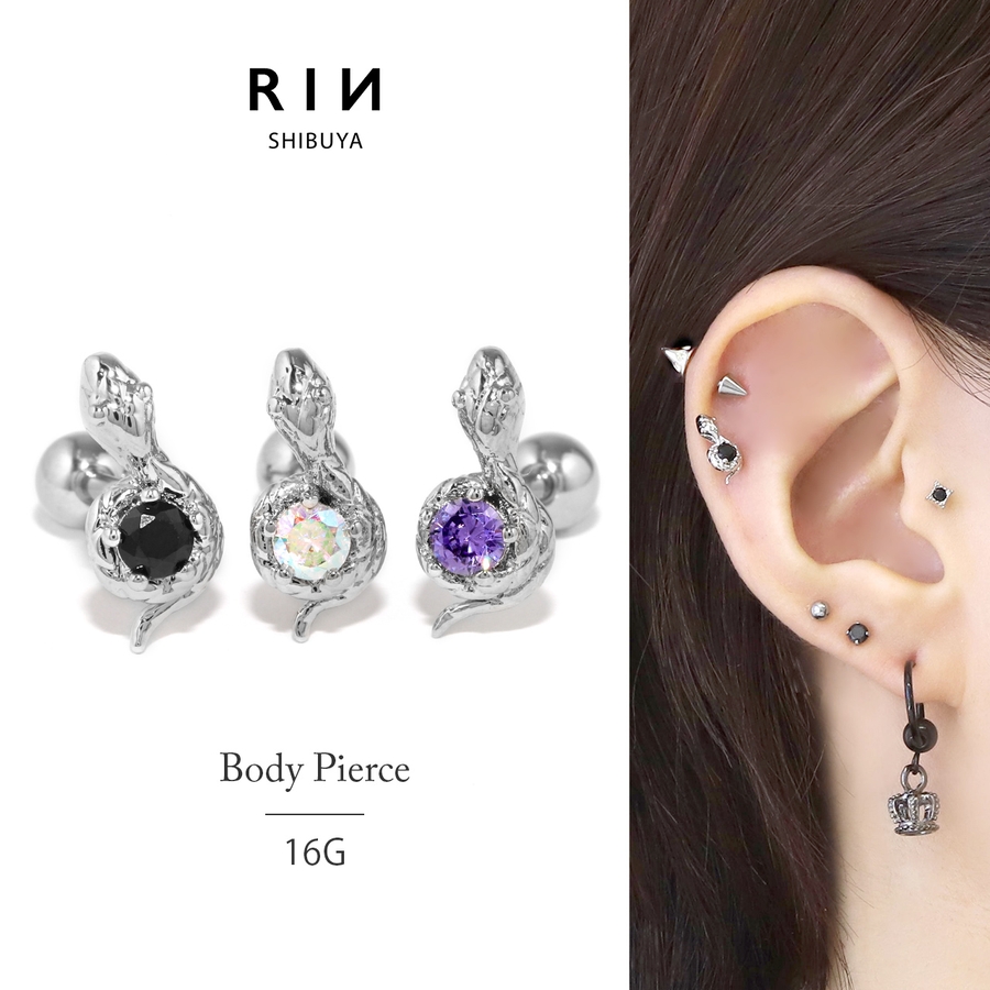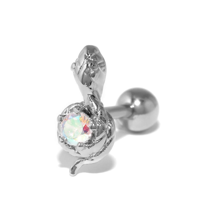 軟骨ピアス 蛇スネークとぐろ ジュエルキュービックジルコニア