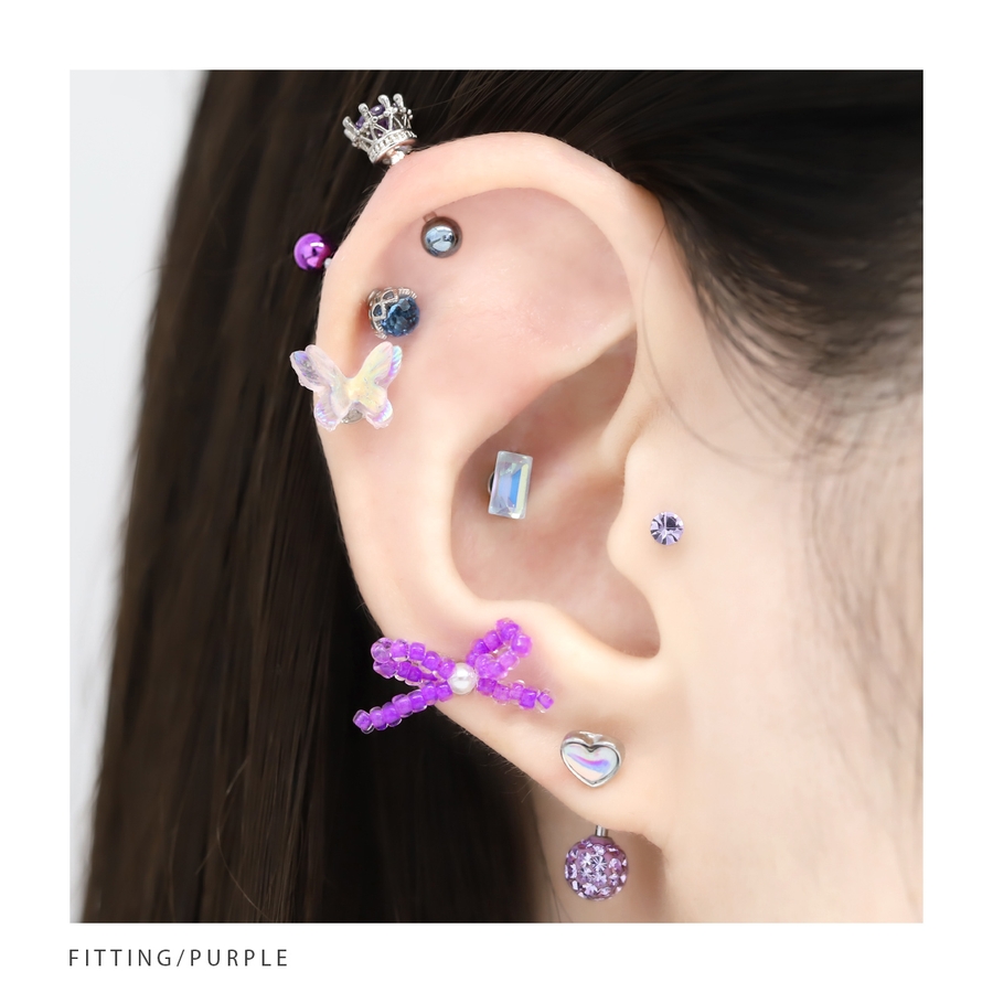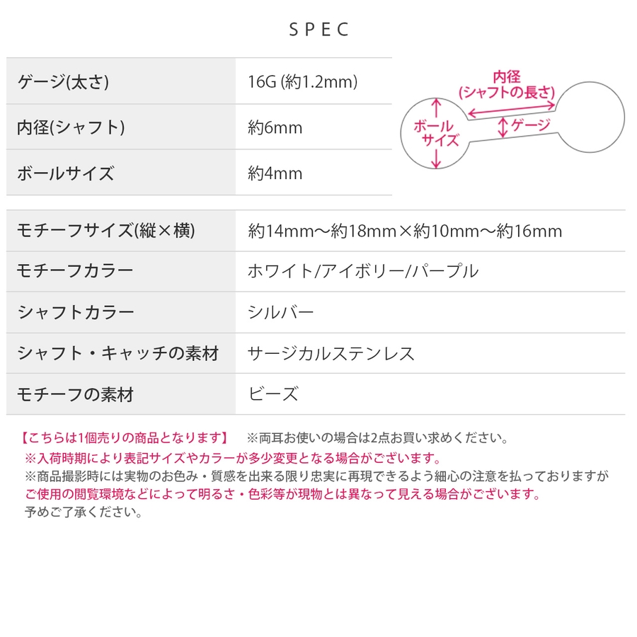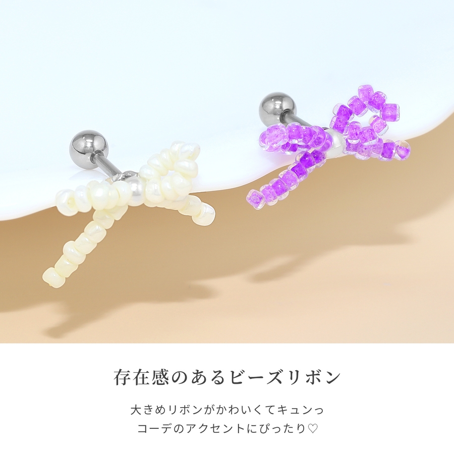 軟骨ピアス リボンビーズかわいい バレエコアエレガント