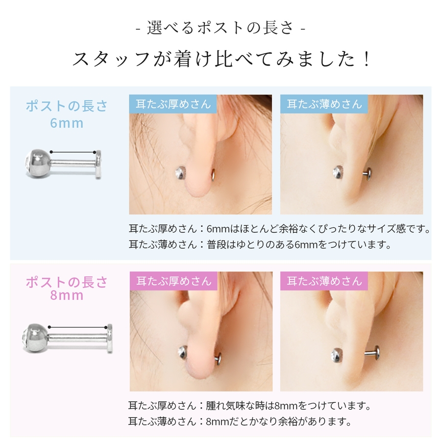 | サイズ | ポスト長6mm / ポスト長8mm |