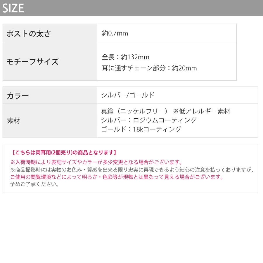 全長:約132mm 耳に通すチェーン部分:20mm