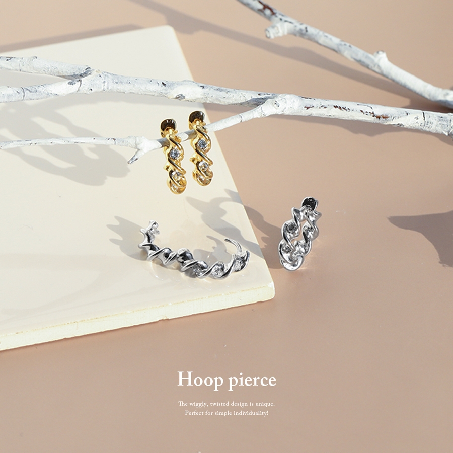ピアス ツイストジュエル 18Kロジウムコーティング