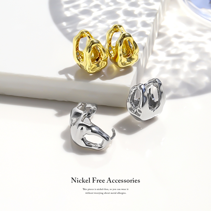 ピアス18Kコーティング 楕円ドロップモードおしゃれ 印象的フープリングピアス