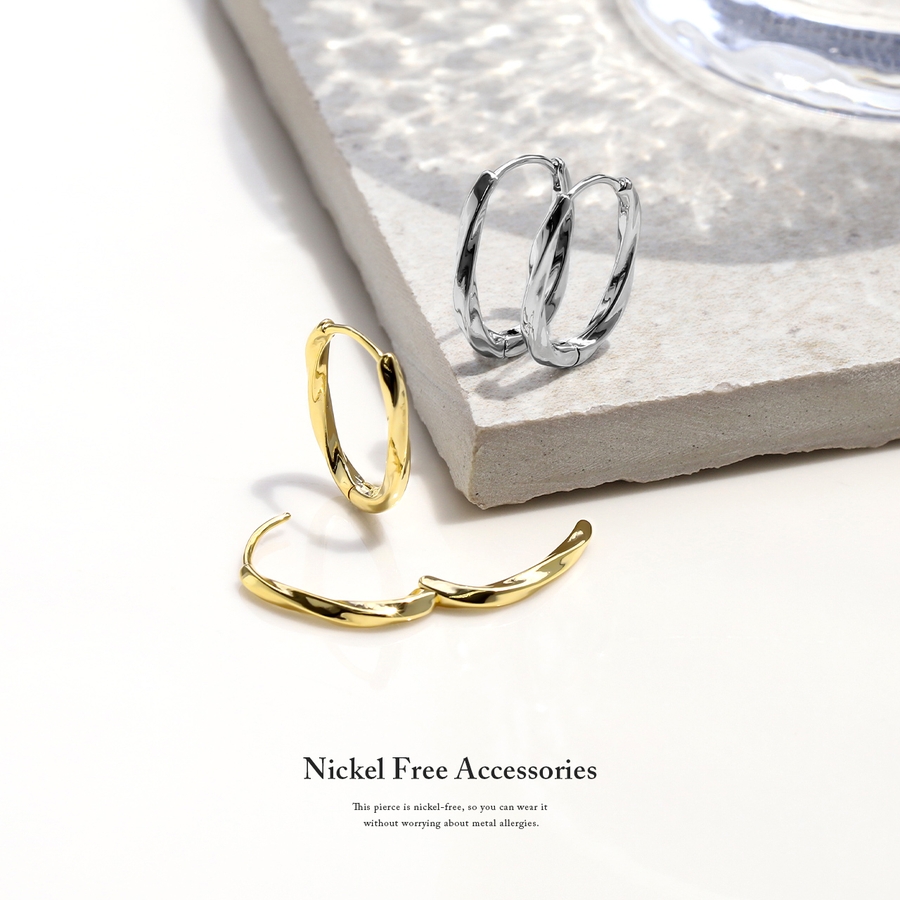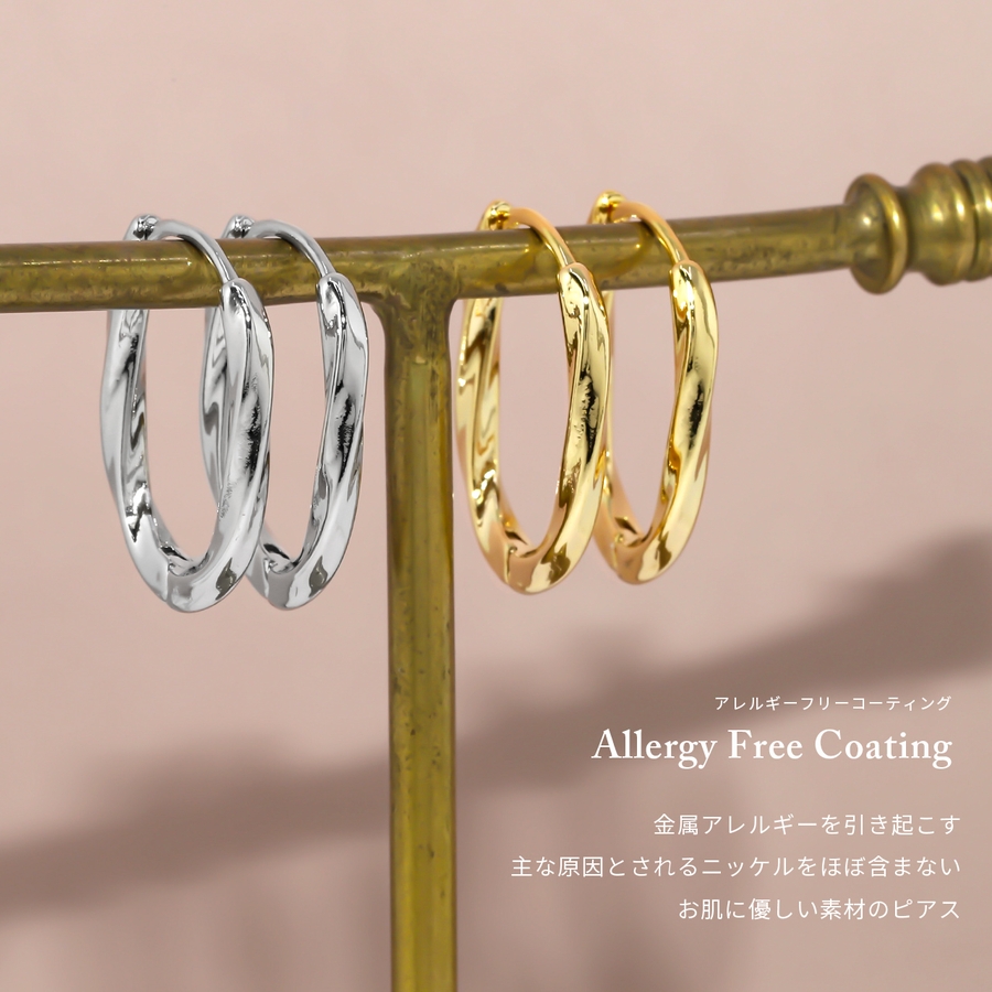ピアス18Kコーティング ツイストオーバルリング フープピアスアクセサリー