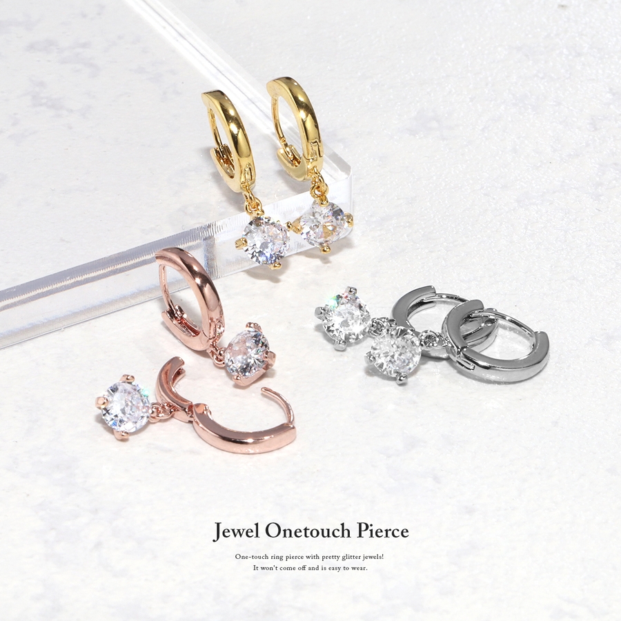 ピアス18Kコーティング ジュエルリング揺れる金アレ対応 きれい
