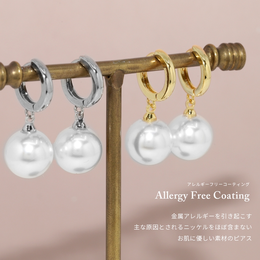 ピアス18Kコーティング パール揺れる金アレ対応 きれいフォーマル