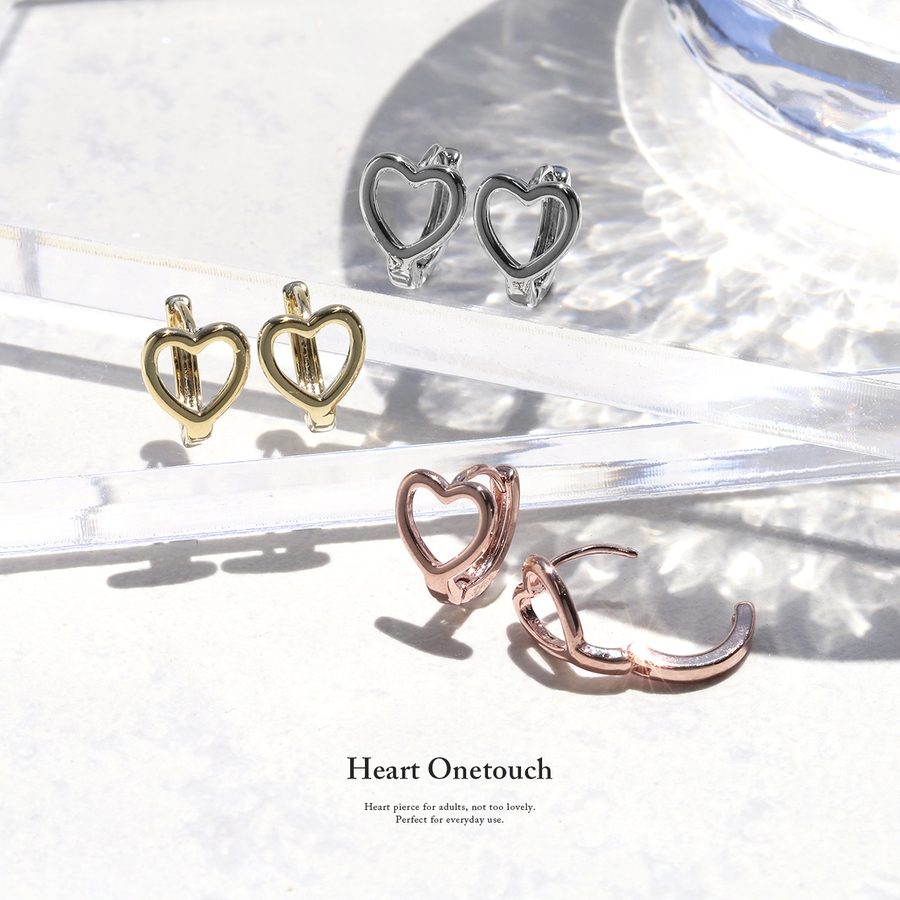 ピアス 18Kコーティングハートリング ハートフレームフープピアス