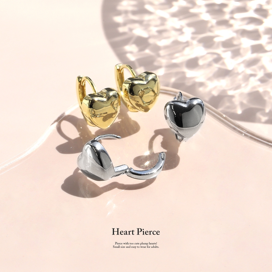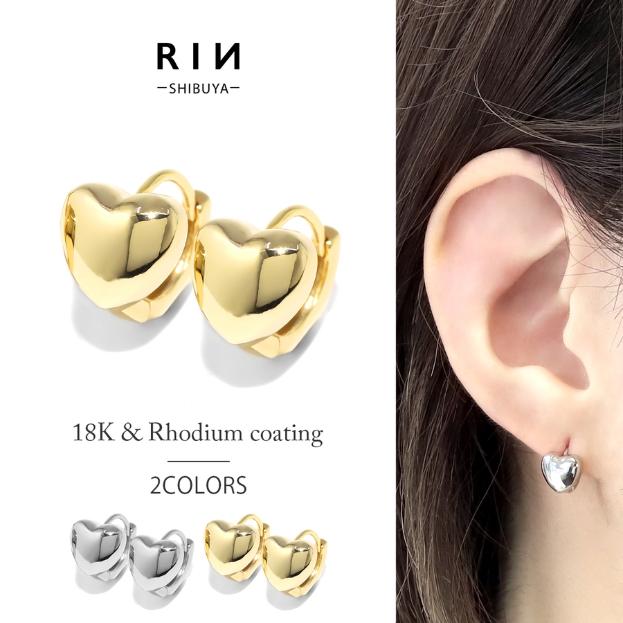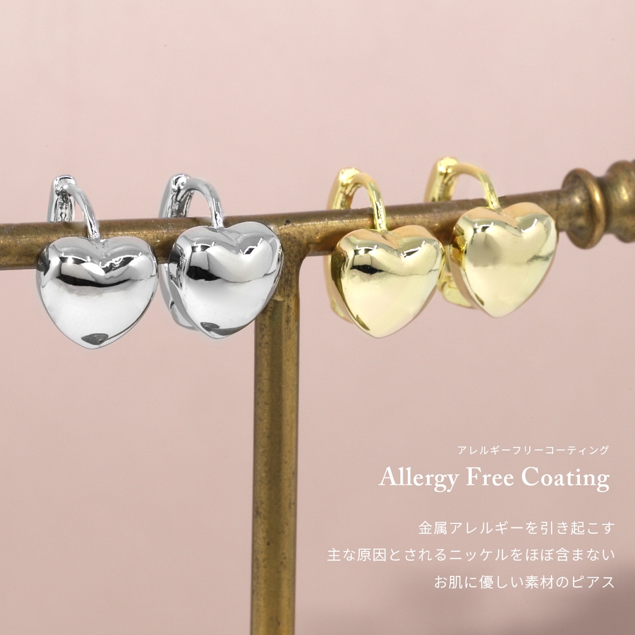 ピアス18Kコーティング ハートリング丸みはーと立体感 フープピアス