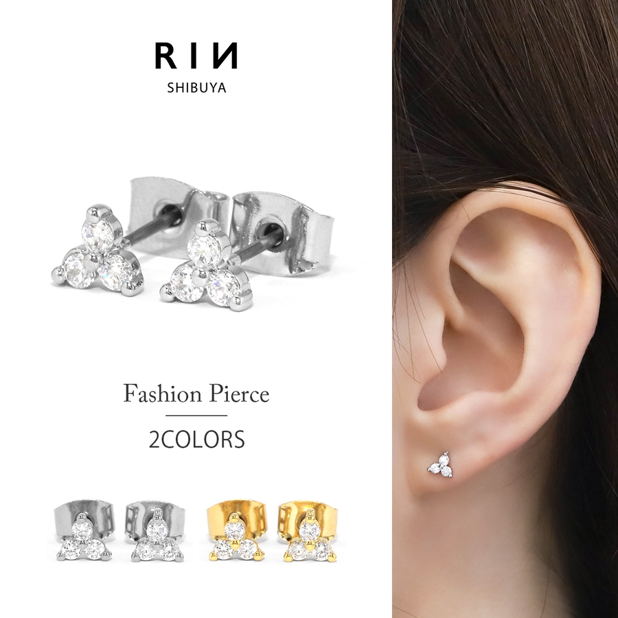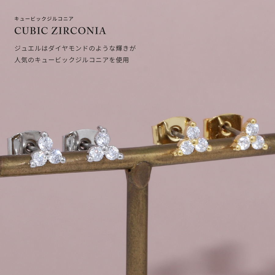 ピアス18Kコーティング ジュエルストーン3葉 ソフィスティケートスタッドアクセ…