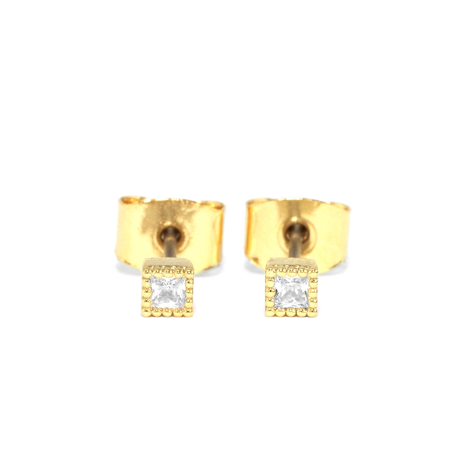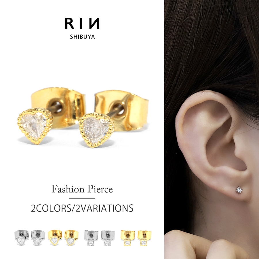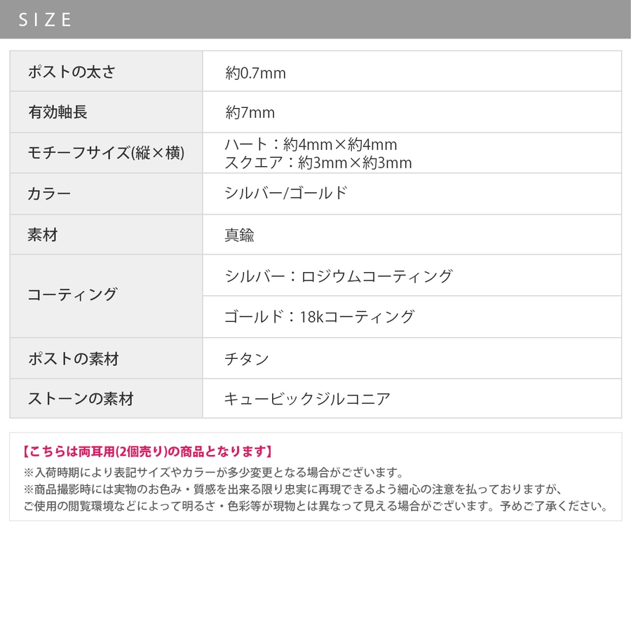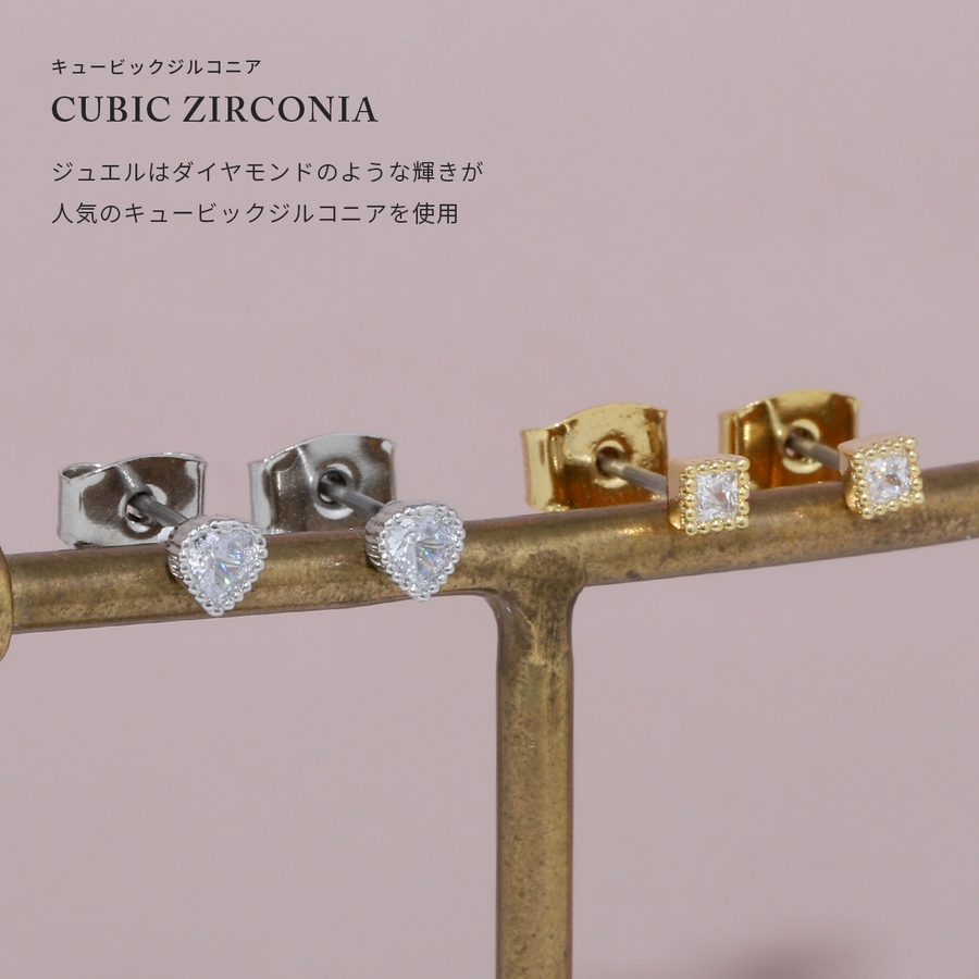 ピアス18Kコーティングロジウム ハートスクエアジュエルストーン CZスタッドア…