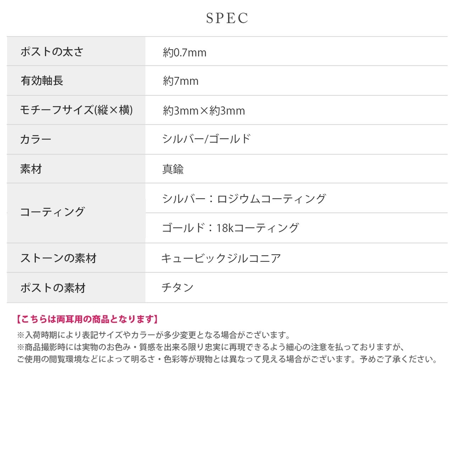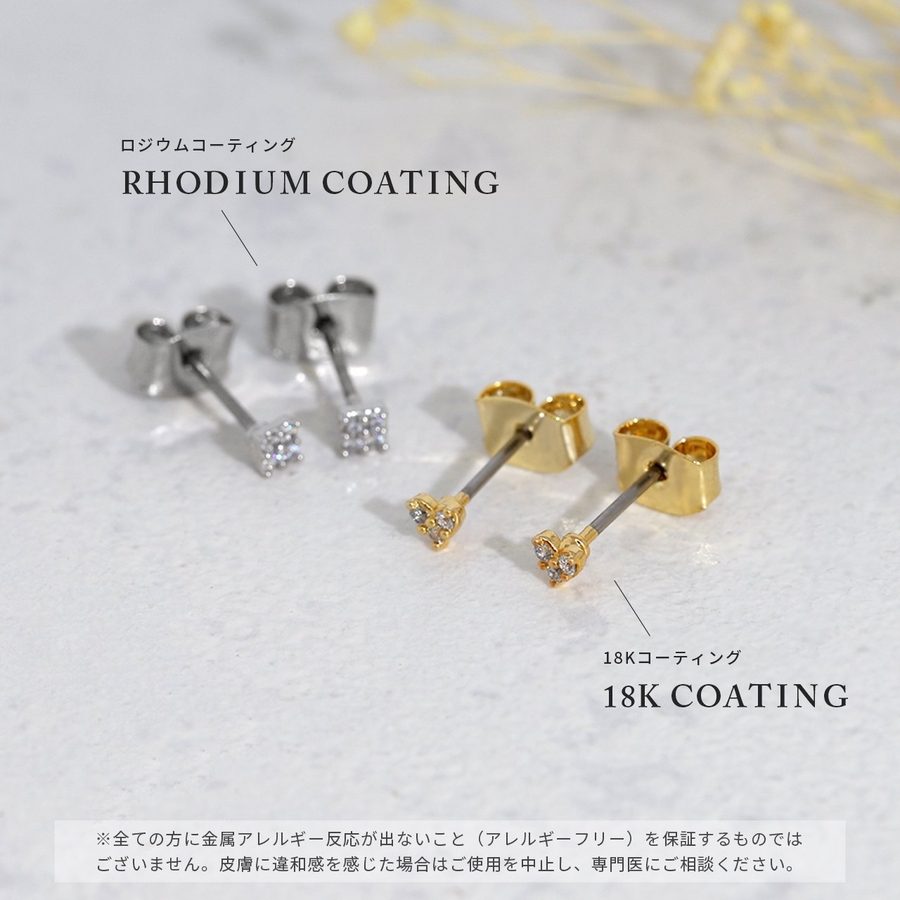 ※ゴールドやブラック、ピンクゴールド等のカラーコーティング素材は、体質によって長時間つけたままにされますとコーティング素材が剥がれやすくなる可能性がございます。