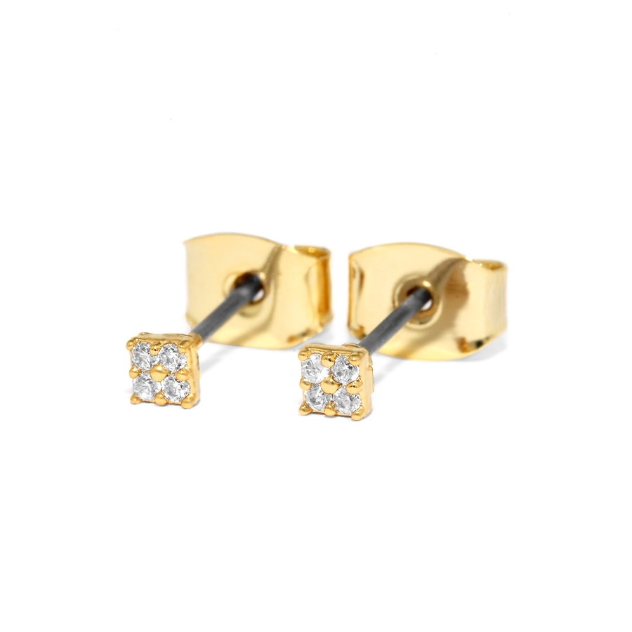 ピアス18Kコーティング ハートスクエアCZストーン スタッドアクセサリー
