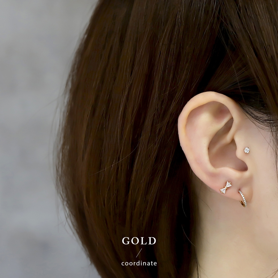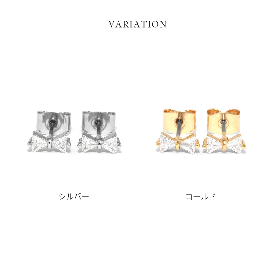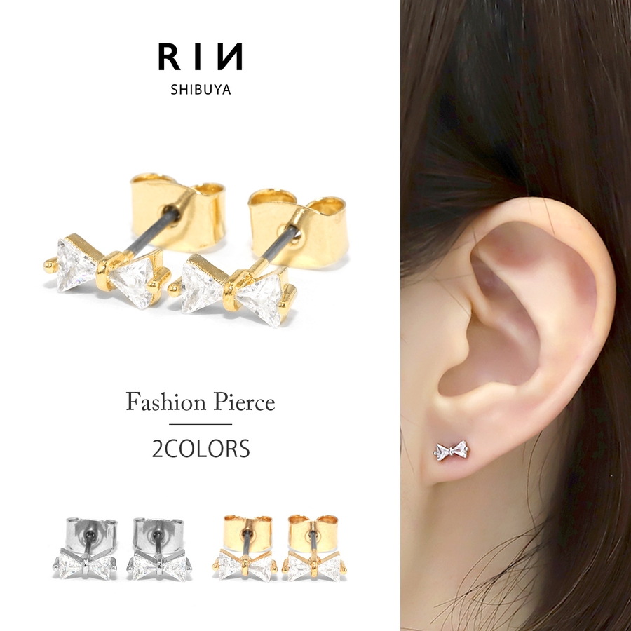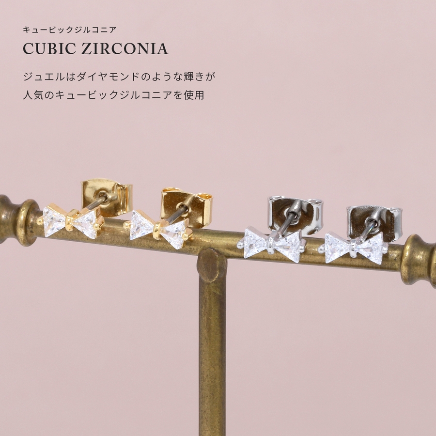 ピアス18Kコーティング リボンりぼんCZストーン きれいスタッドアクセサリー