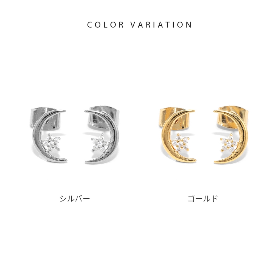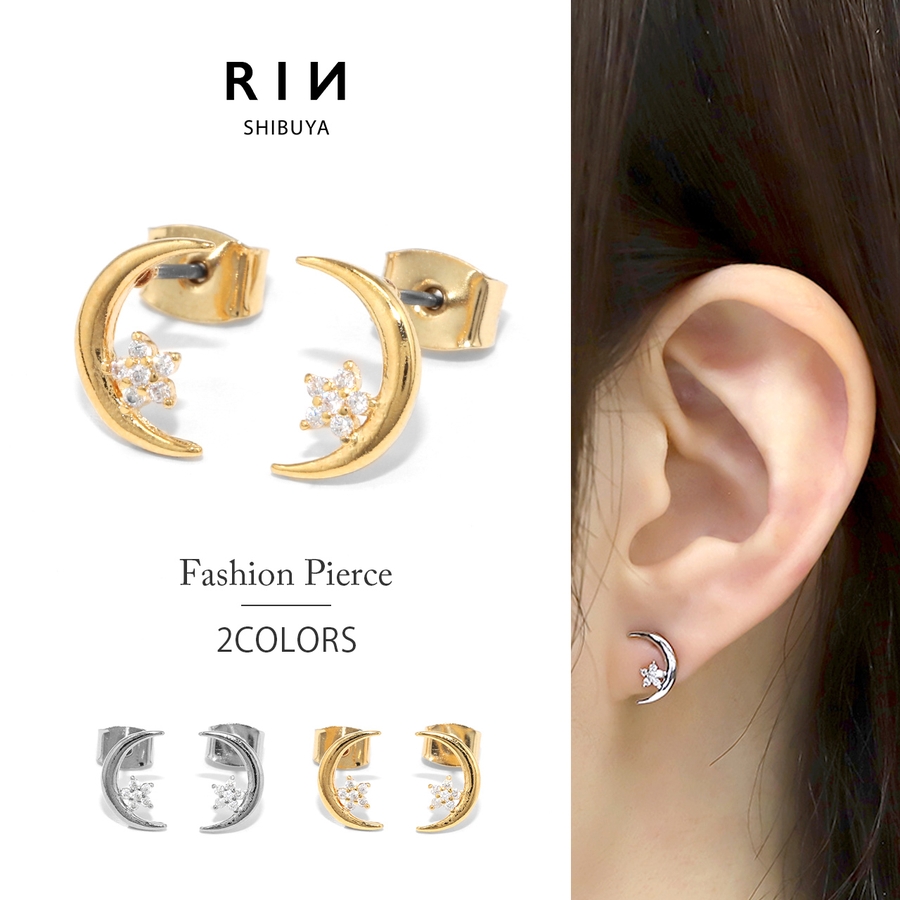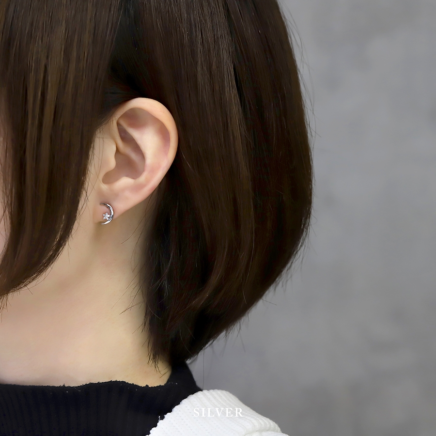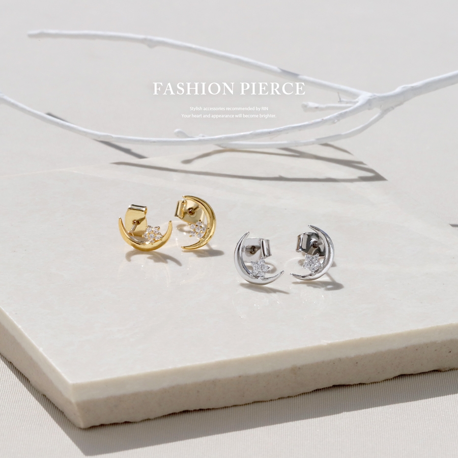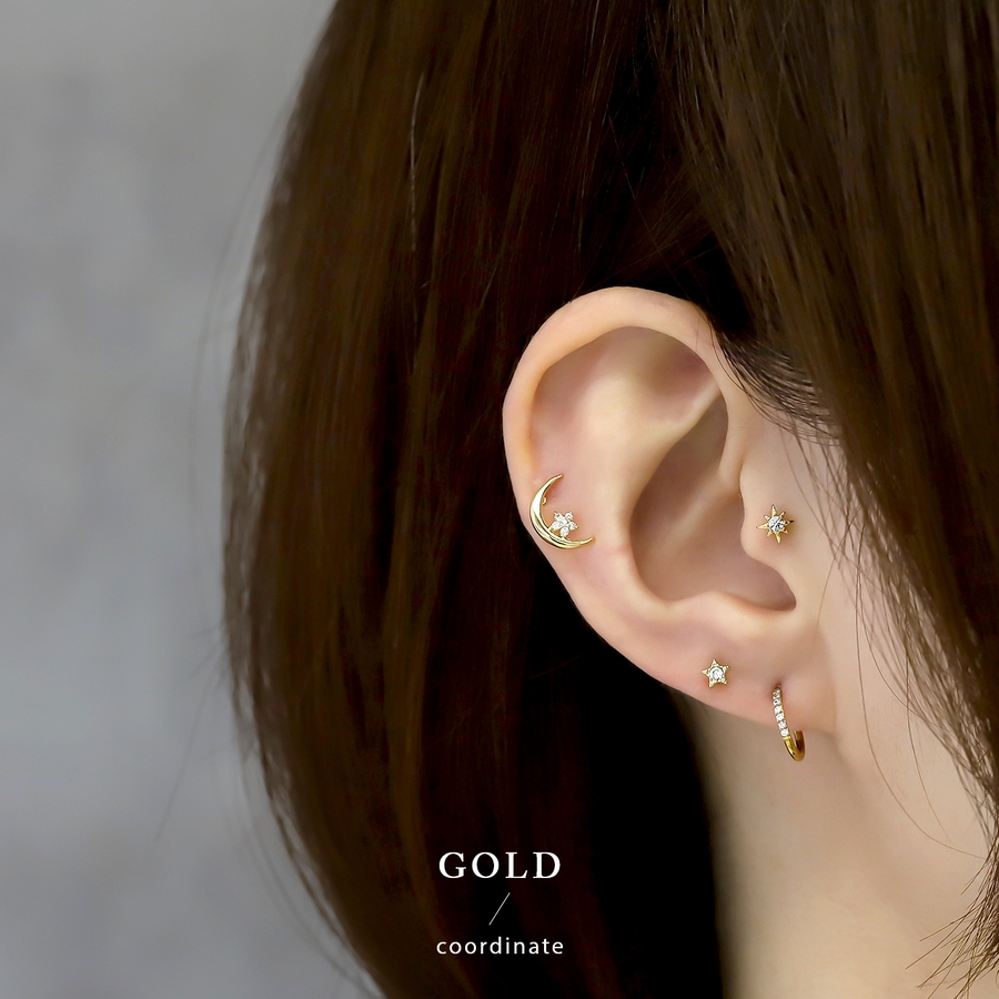 ピアス18Kコーティング ムーン三日月星スター CZストーンきれいスタッド