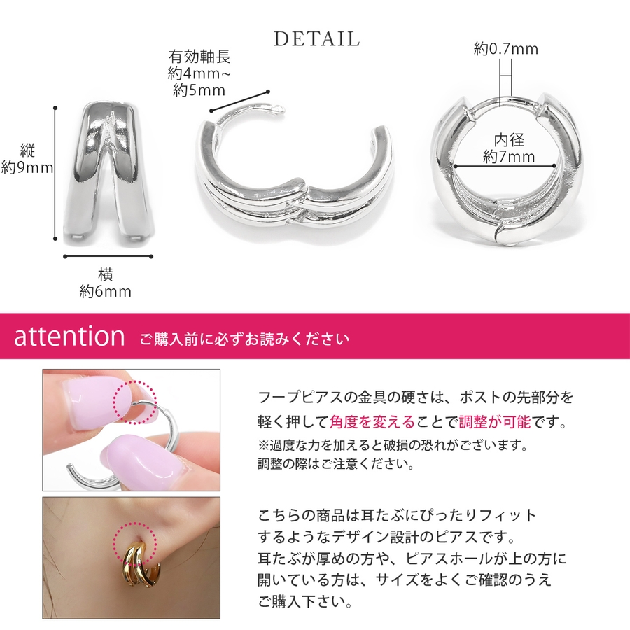耳たぶが厚めの方やホールが上のほうに空いている方はサイズをよくご確認の上ご検討くださいませ。